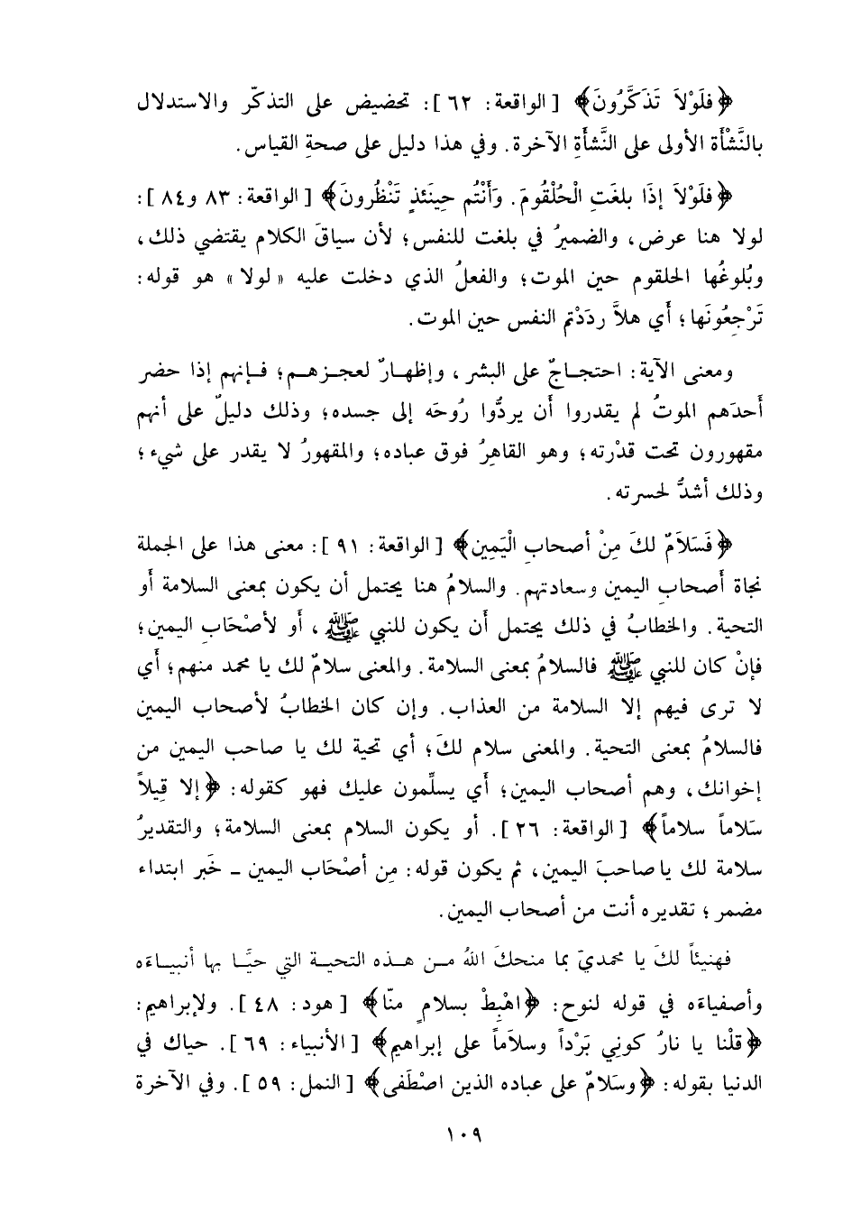 أو يكون السلام بمعنى السلامة، والتقدير سلامة لك يا صاحبَ اليمين، ثم يكون قوله: (مِن أصْحَاب اليمين) - خَبر ابتداء مضمر، تقديره أنت من أصحاب اليمين.
