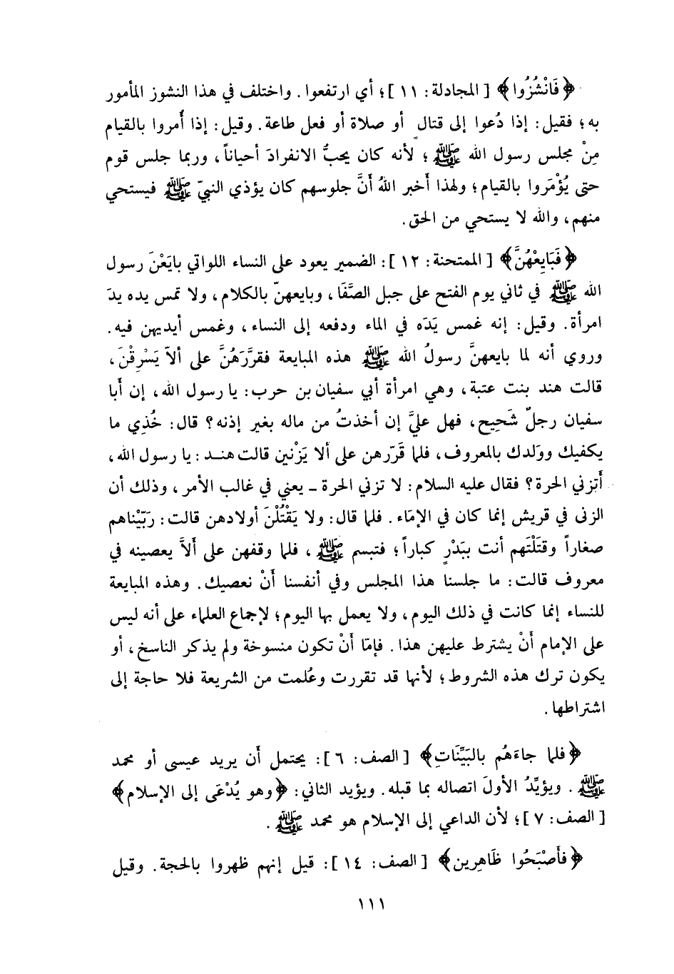 الضمير يعود على النساء اللواتي بايَعْنَ رسول الله - صلى الله عليه وسلم - في ثاني يوم الفتح على جبل الصَّفَا، وبايعهنَّ بالكلام، ولا تمس يده يدَ