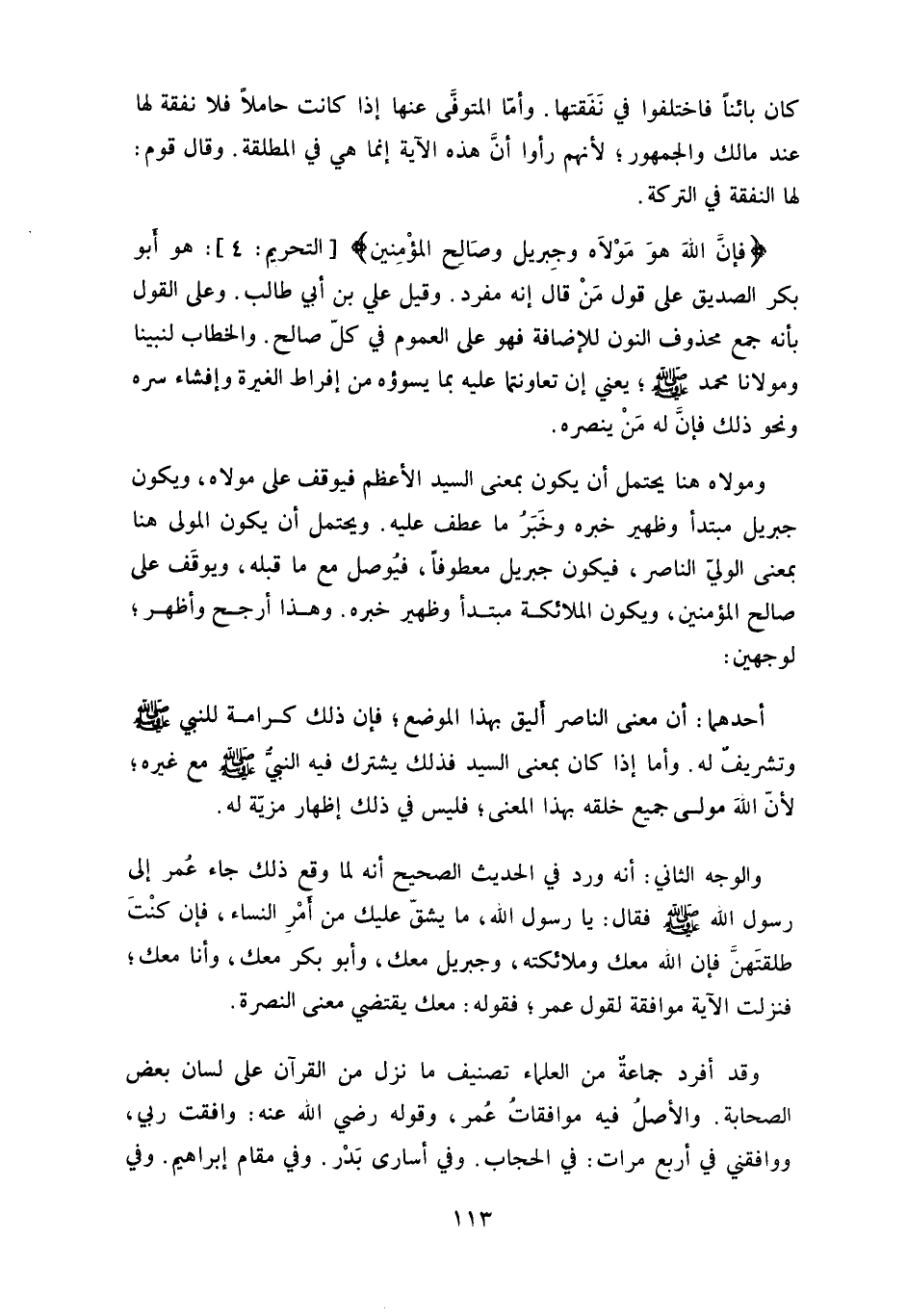 ويحتمل أن يكون المولى هنا بمعنى الولي الناصر، فيكون (جبريل) معطوفاً، فيوصل مع ما قبله، ويوقَف على (صالح المؤمنين) ، ويكون (الملائكة) مبتدأ