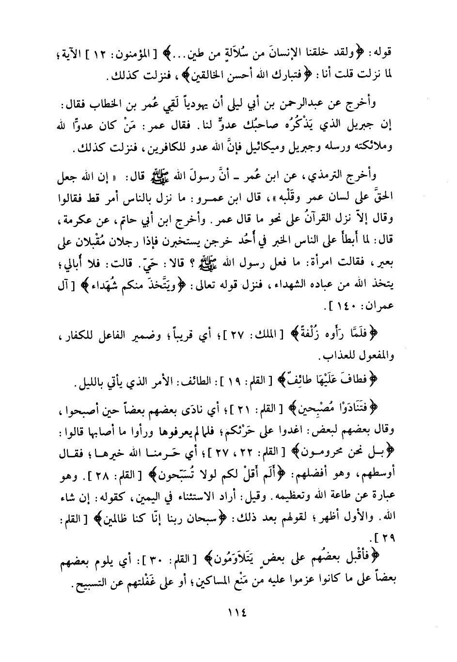 والأول أظهر، لقولهم بعد ذلك: (سبحان ربِّنا إنَّا كُنَّا ظالمين) (فأقْبل بعضُهم على بعض يتَلاَوَمُون) : أي يلوم بعضهم بعضاً على ما كانوا عزموا عليه من مَنعْ المساكين، أو على غَفْلتهم عن التسبيح.