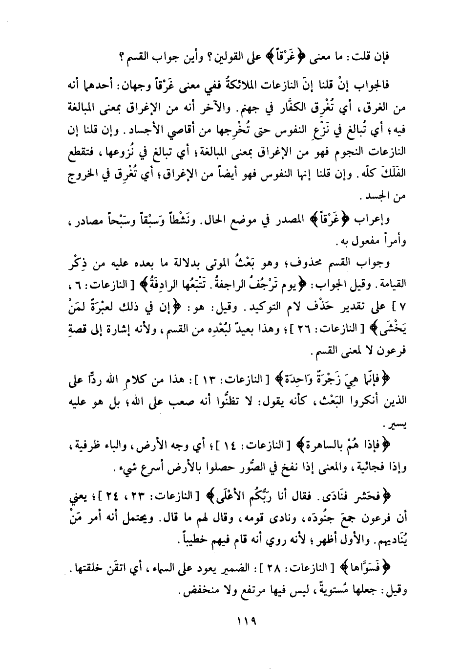 والآخر أنه من الإغراق بمعنى المبالغة فيه، أي تُبالغ في نَزْعِ النفوس حتى تُخْرِجها من أقاصي الأجساد.