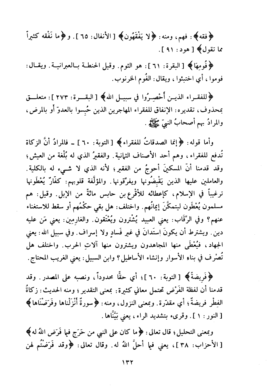 والفقيرُ الذي له بُلْغة من العيش، وقد قدمنا أنَّ المسكينَ أحوجُ من الفقير، لأنه الذي لا شيء له بالكلية.