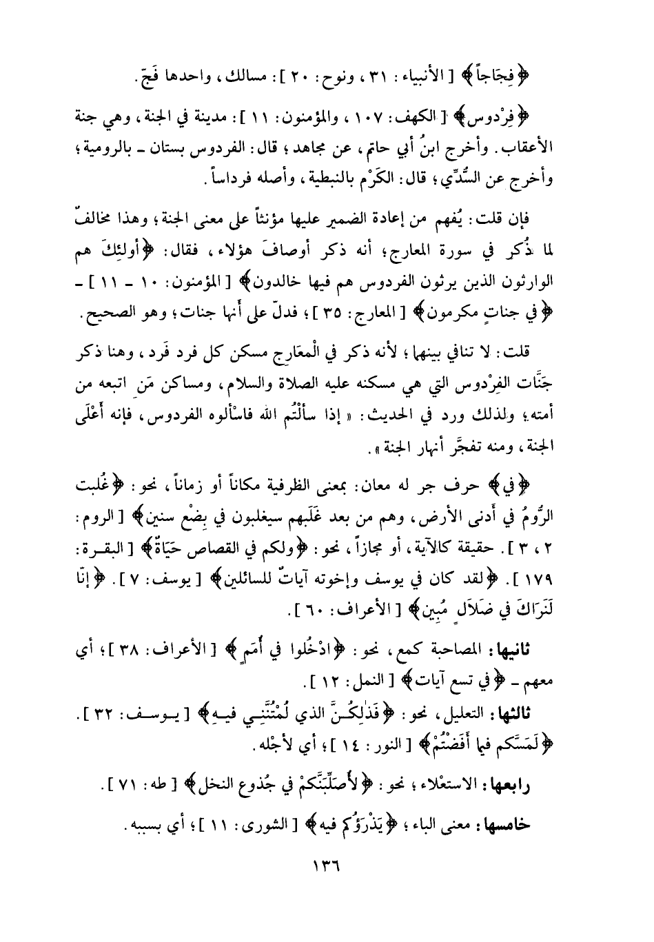 الوارثون الذين يرثون الفردوس هم فيها خالدون) - (في جناتٍ مكرمون) ، فدلّ على أنها جنات، وهو الصحيح.
