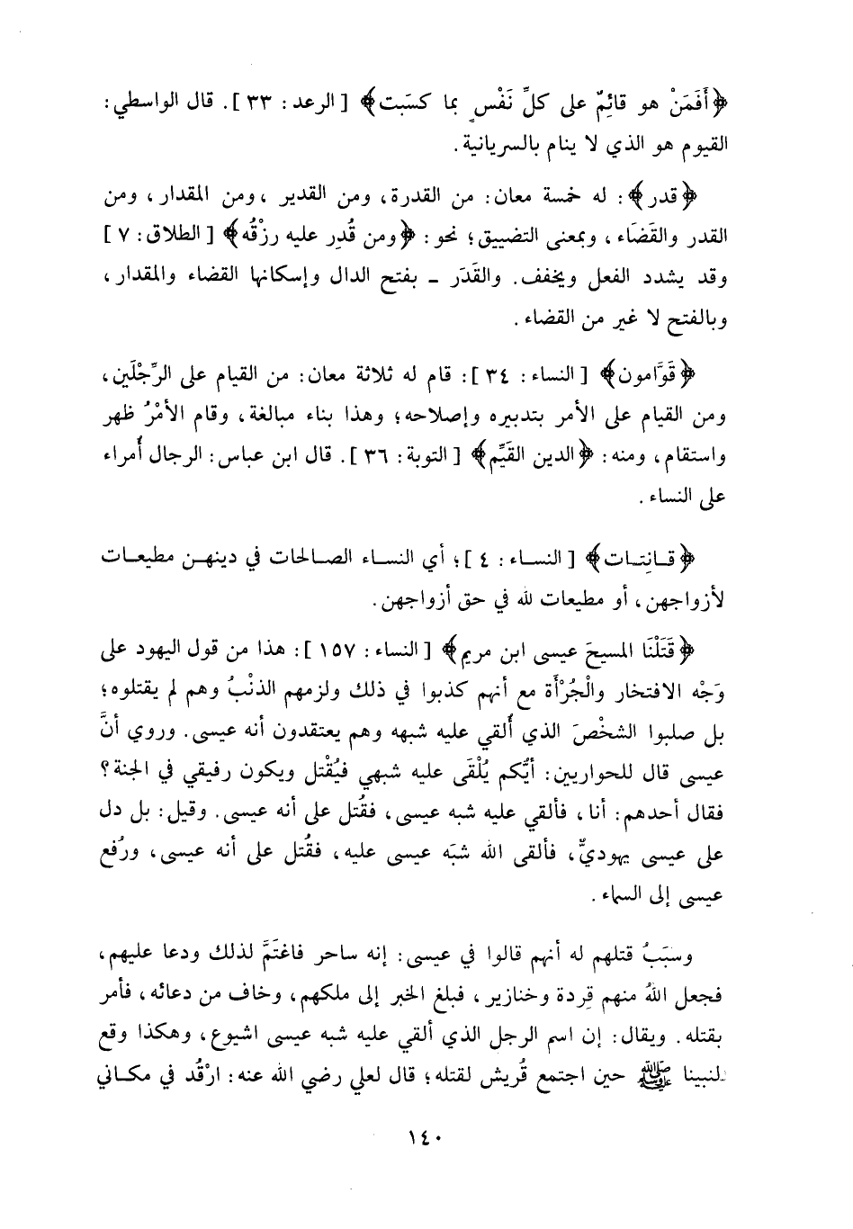 ومنه: (أَفَمَنْ هو قائِمٌ على كل نَفْس بما كسَبت) .