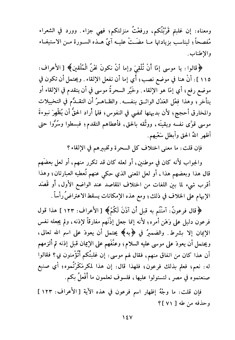 فإن قلت: ما معنى اختلاف كل السحرة وتخييرهم في الإلقاء؟