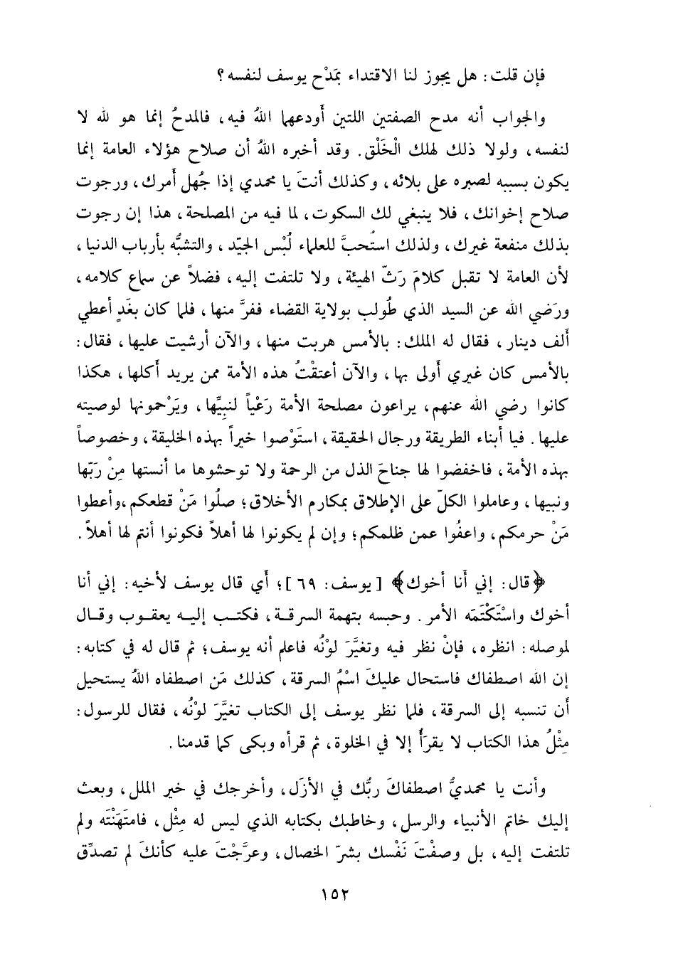 فإن قلت: هل يجوز لنا الاقتداء بمَدْح يوسف لنفسه؟