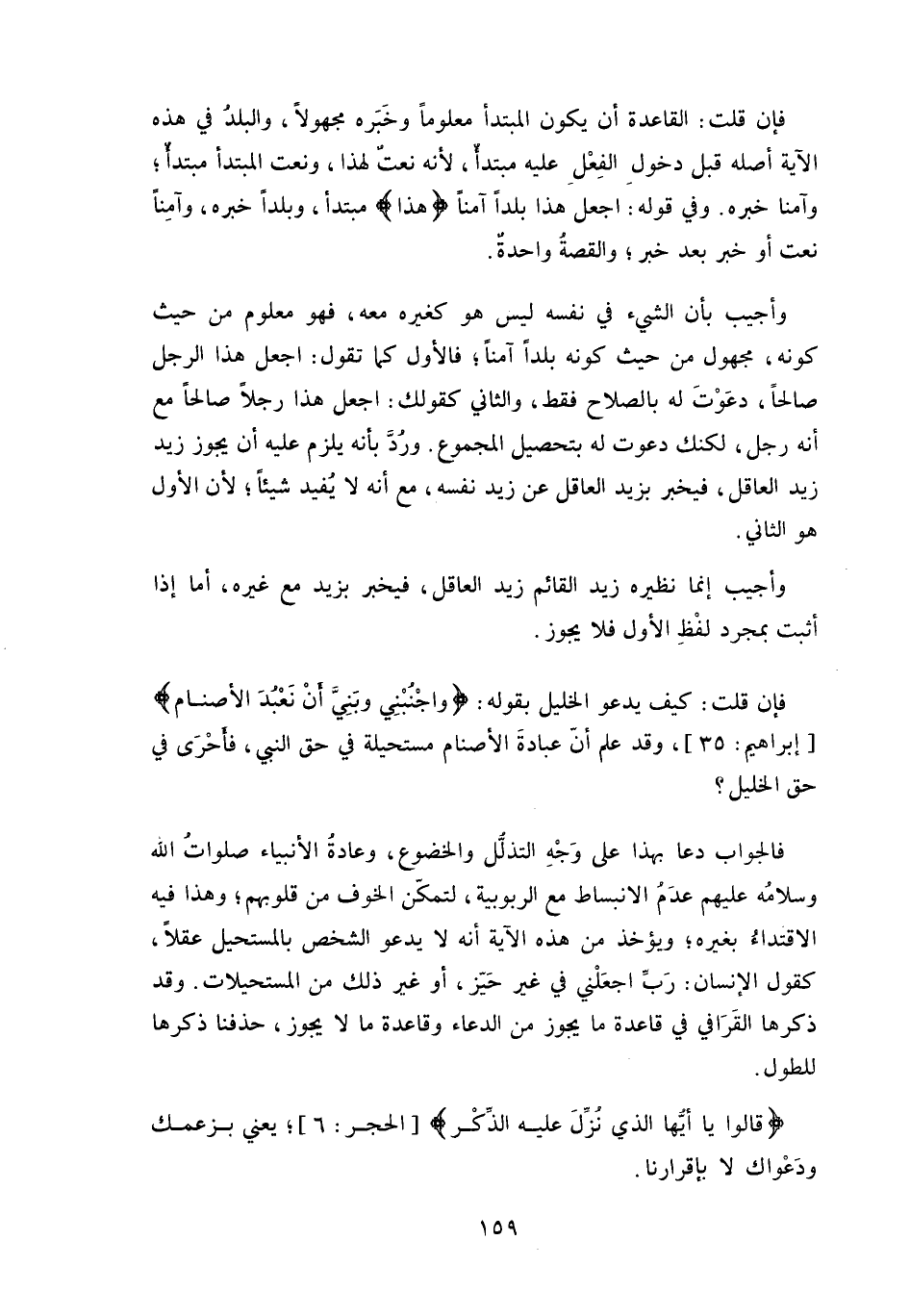 وقد ذكرها القَرَافي في قاعدة ما يجوز من الدعاء وقاعدة ما لا يجوز، حذفنا ذكرها للطول.