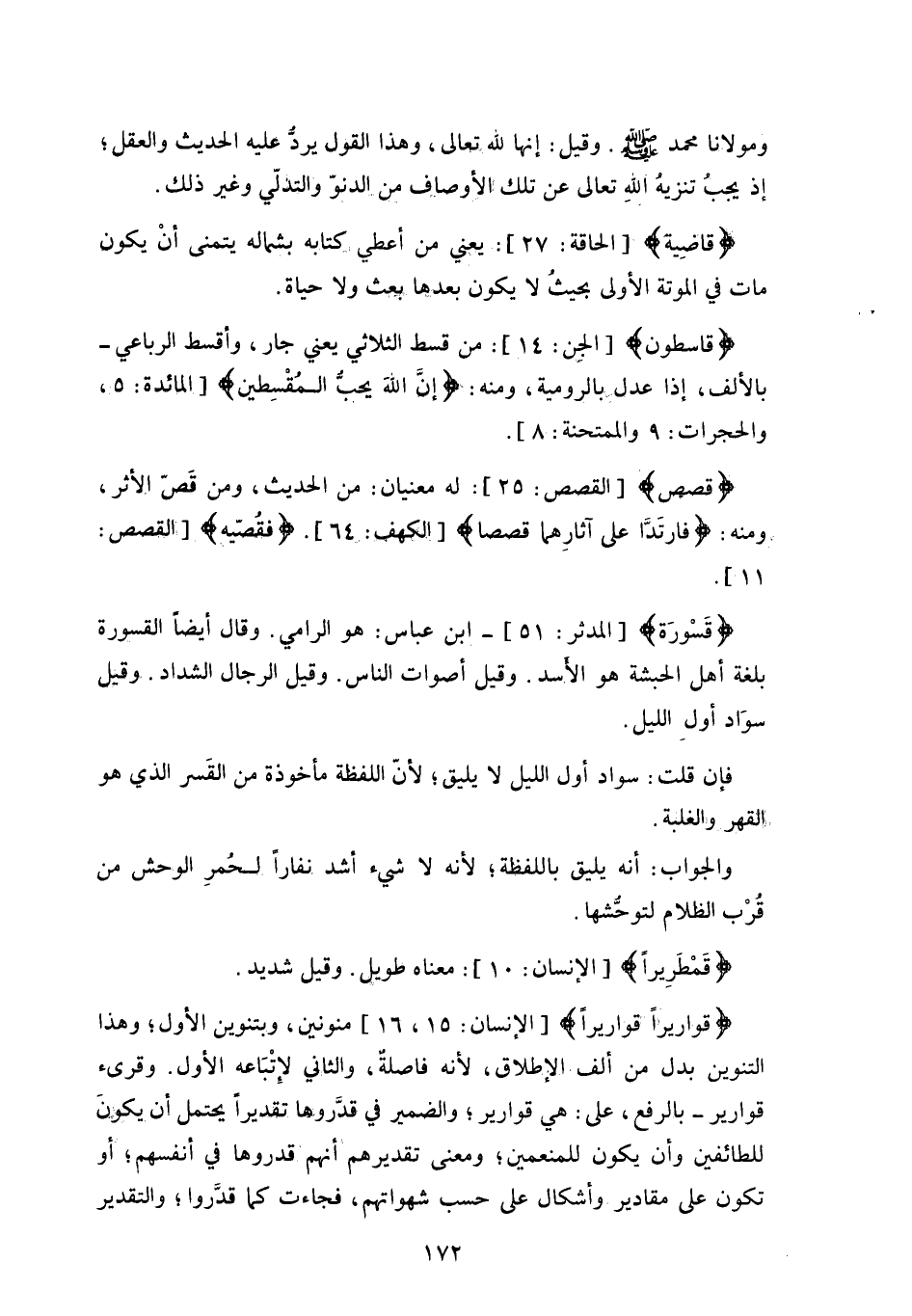 فإن قلت: سواد أول الليل لا يليق، لأنَّ اللفظة مأخوذة من القَسر الذي هو