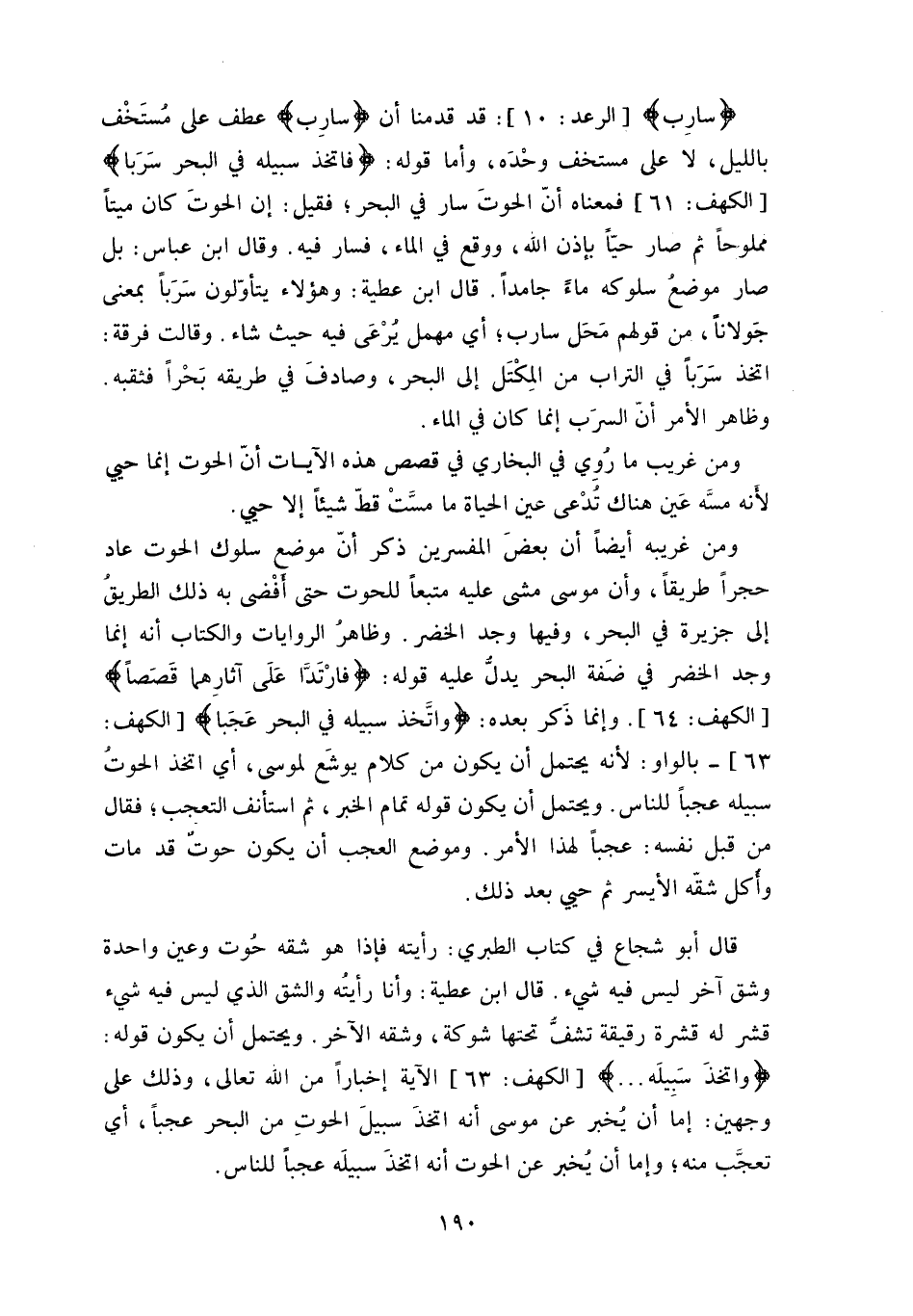 قال ابن عطية: وهؤلاء يتأوّلون سَرَباً بمعنى جَولاناً، من قولهم مَحَل سارب، أي مهمل يرْعَى فيه حيث شاء.