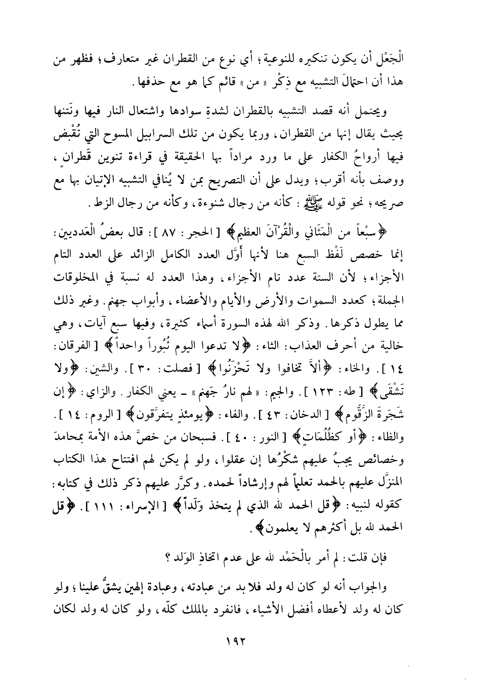 فإن قلت: لم أمر بالحَمْد للَه على عدم اتخاذِ الوَلد؟