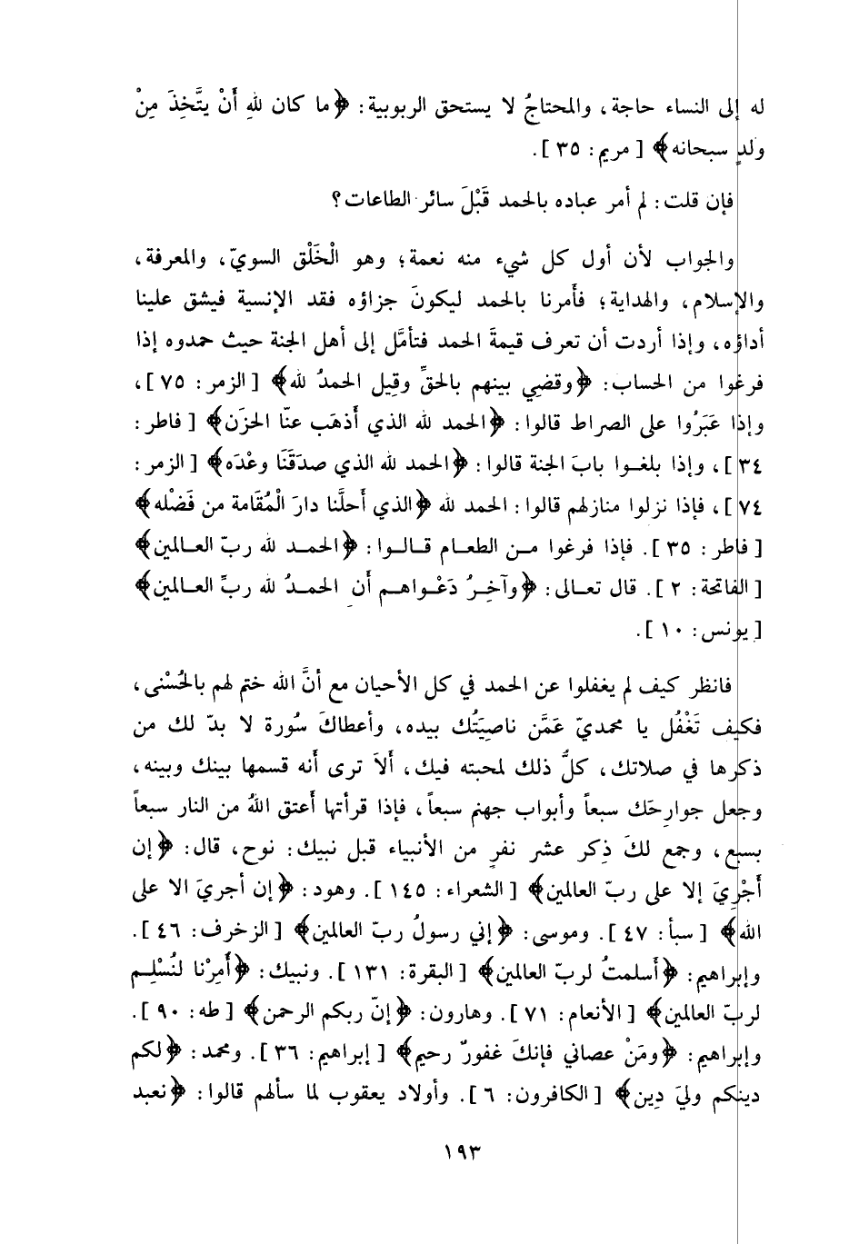 والإسلام، والهداية، فأمرنا بالحمد ليكونَ جزاؤه فقد الإنسية فيشق علينا