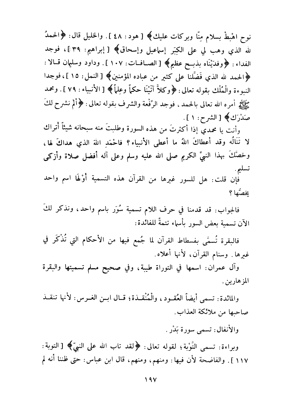 فالجواب: قد قدمنا في حرف اللام تسمية سوَر باسم واحد، ونذكر لكَ