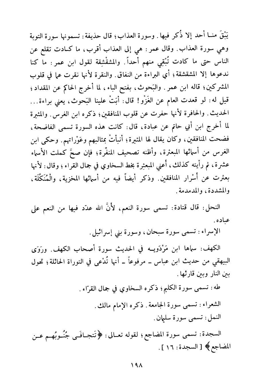 النحل: قال قتادة: تسمى سورة النعم، لأن الله عدّد فيها من النعم على