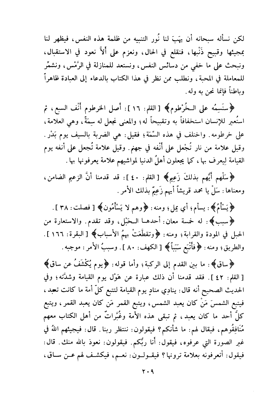 ونبحث على ما خفي من دسائس النفس، ونستعد للمنازلة في الرَّمْس، ونشمِّر للمعاملة في المحبة، ونطلب ممن نظر في هذا الكتاب بالدعاء إلى العبادة ظاهراً وباطناً فإنما نحن به وله.