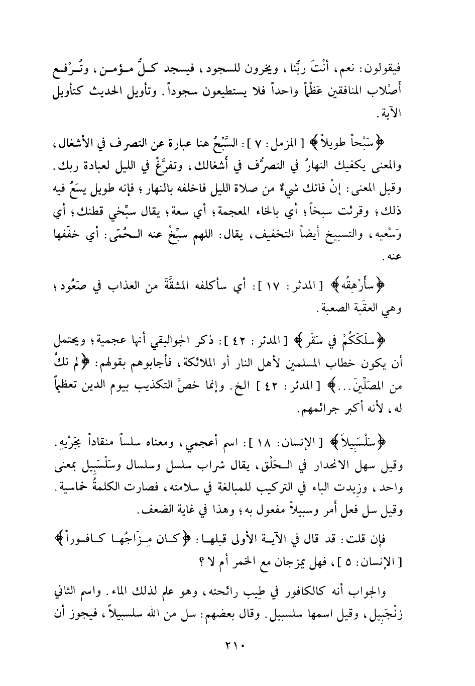 ذكر الجواليقي أنها عجمية، ويحتمل أن يكون خطاب المسلمين لأهل النار أو الملائكة، فأجابوهم بقولهم: (لَمْ نَكُ مِنَ الْمُصَلِّينَ) .