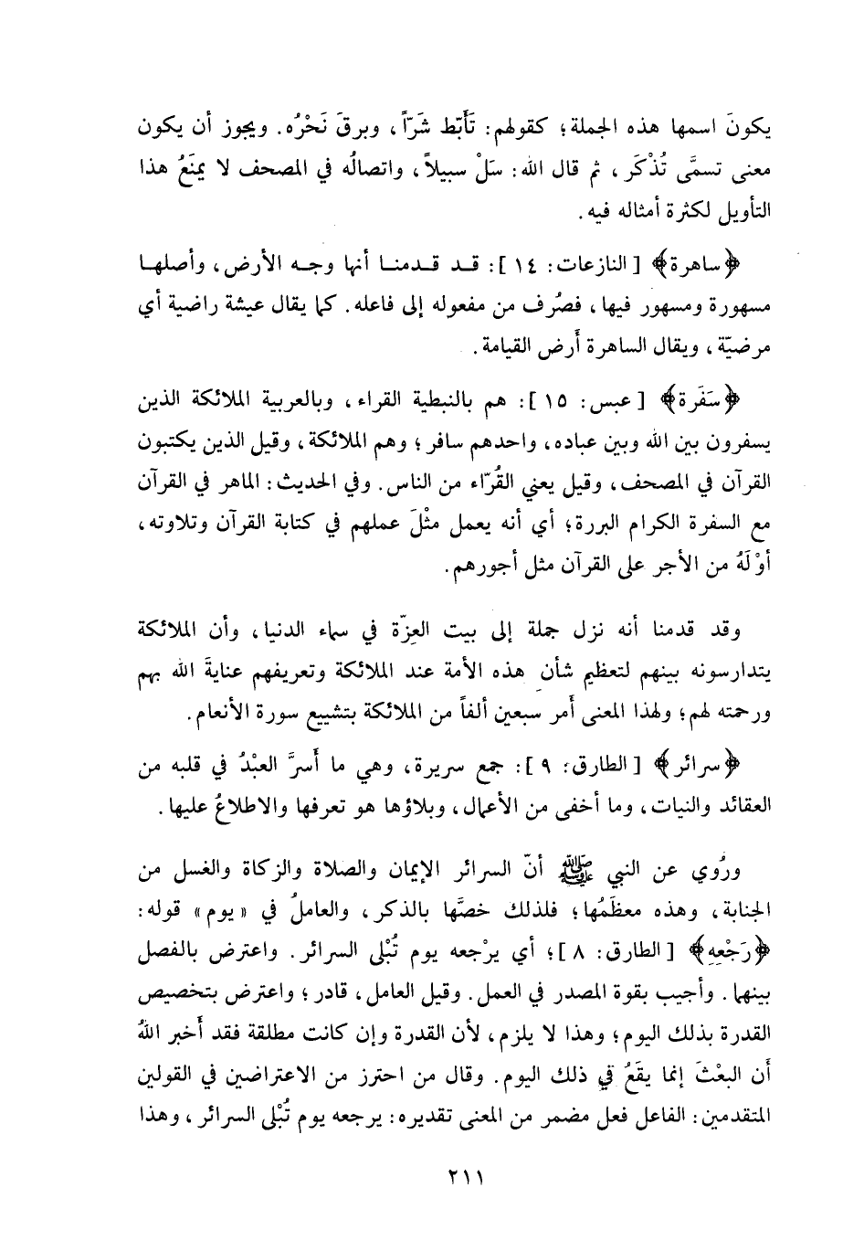 هم بالنبطية القراء، وبالعربية الملائكة الذين يسفرون بين الله وبين عباده، واحدهم سافر، وهم الملائكة، وقيل الذين يكتبون القرآن في الصحف، وقيل يعني القرَّاء من الناس.