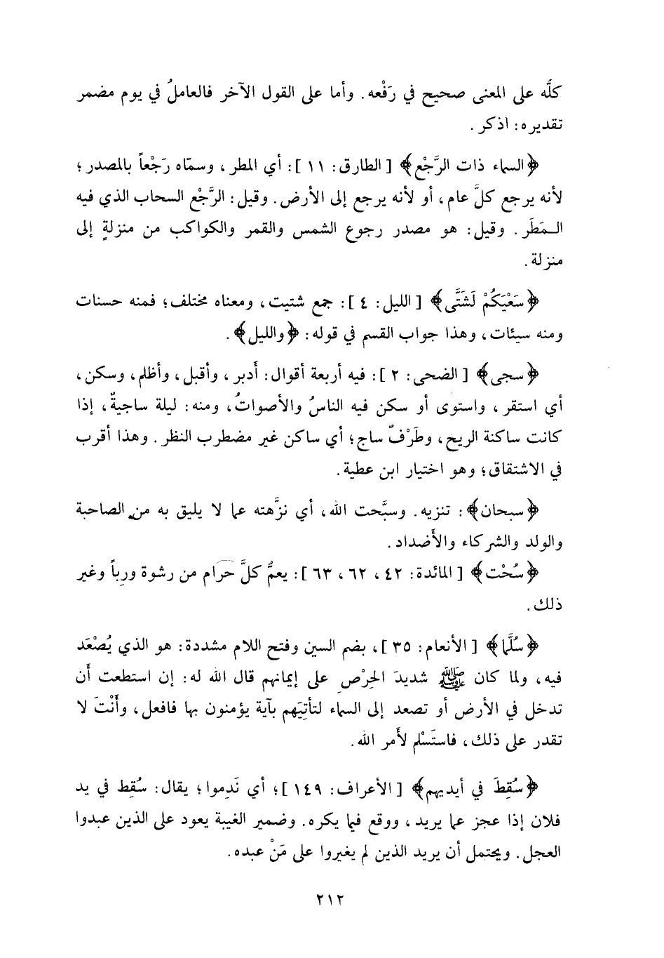 وقيل: هو مصدر رجوع الشمس والقمر والكواكب من منزلةٍ إلى