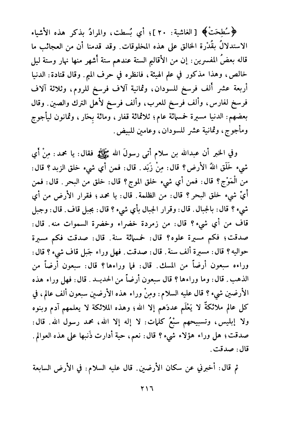 قال عليه السلام: ومِنْ وراء هذه الأرضين سبعون ألف عالم، في