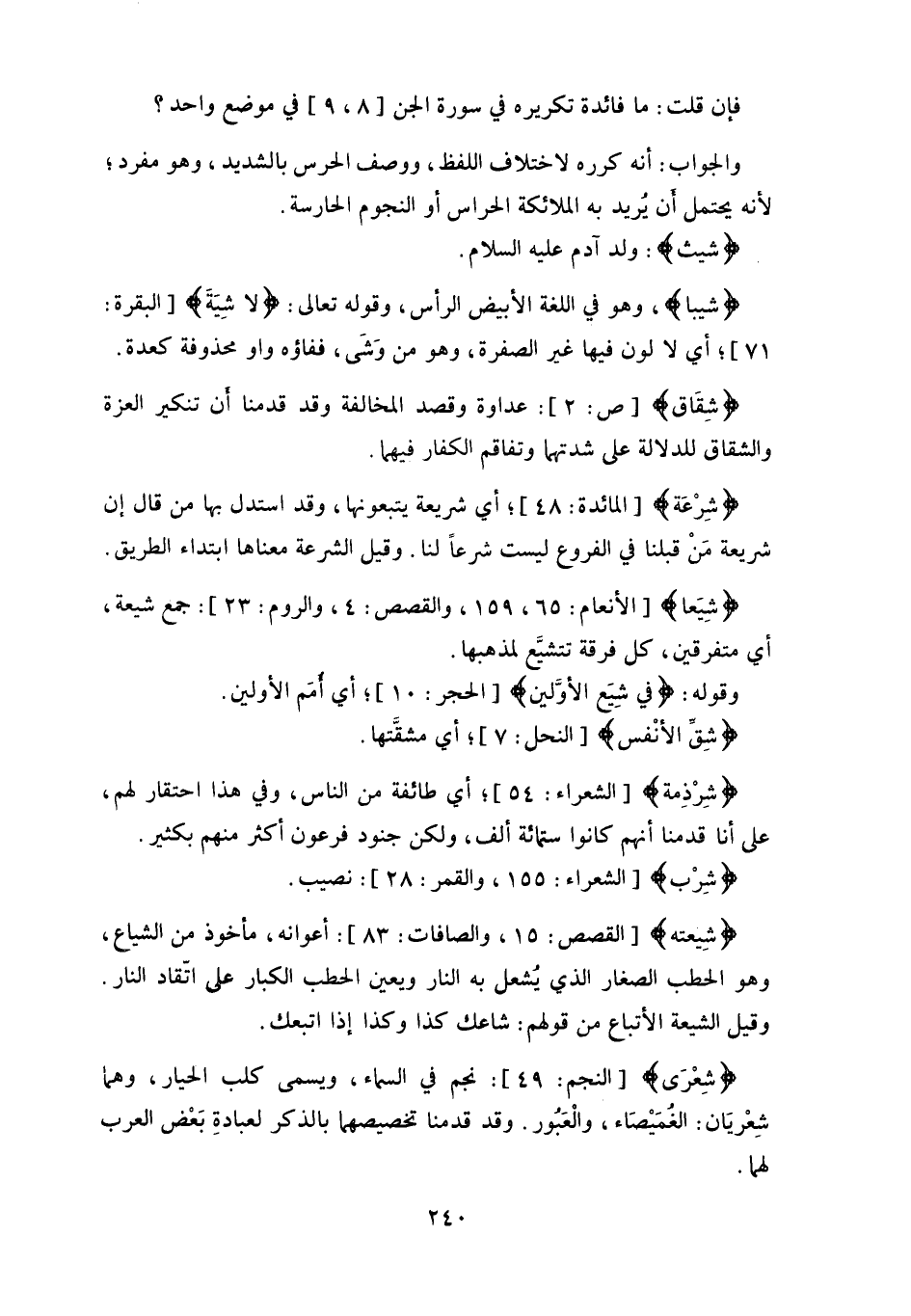(شيبا) ، وهو في اللغة الأبيض الرأس، وقوله تعالى: (لا شِيَةَ) ، أي لا لون فيها غير الصفرة، وهو من وَشَى، ففاؤه واو محذوفة كعدة.