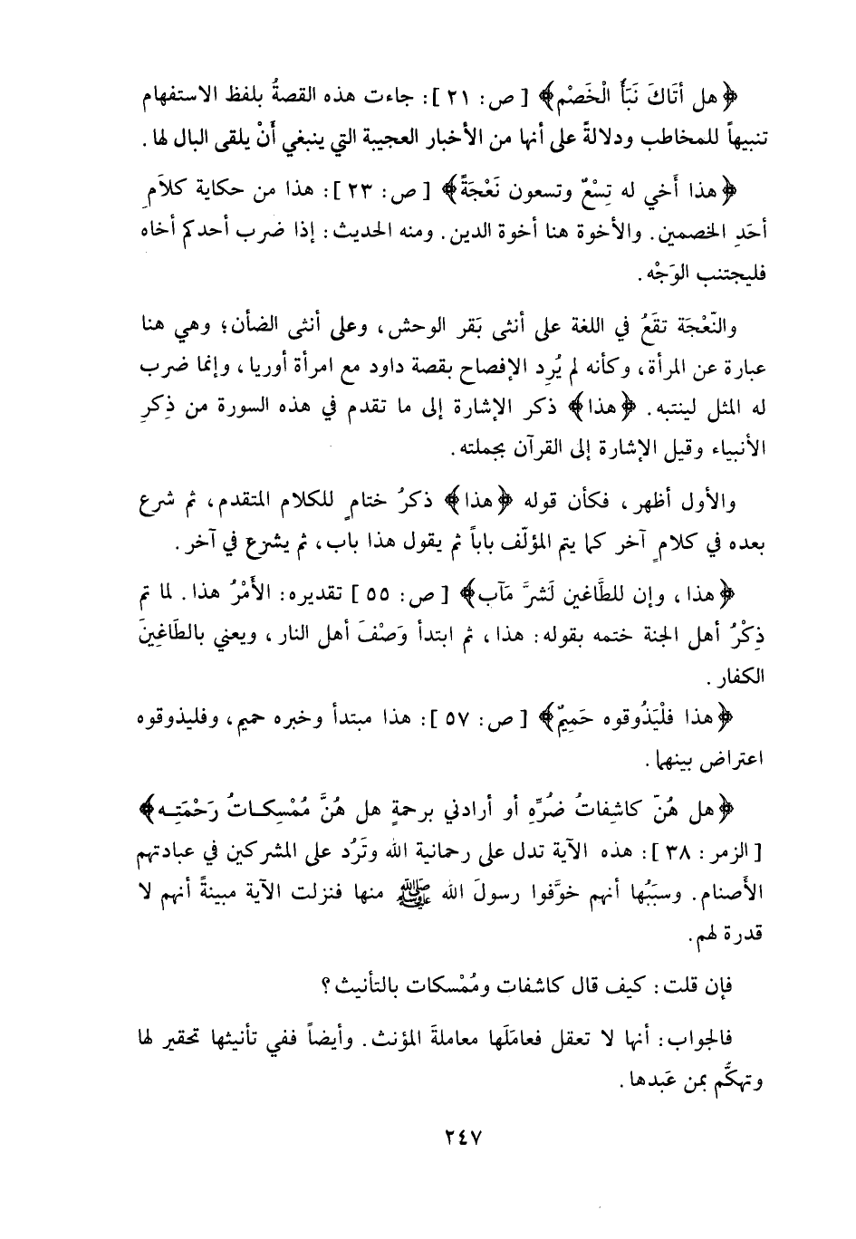 (وَهَلْ أَتَاكَ نَبَأُ الْخَصْمِ) :