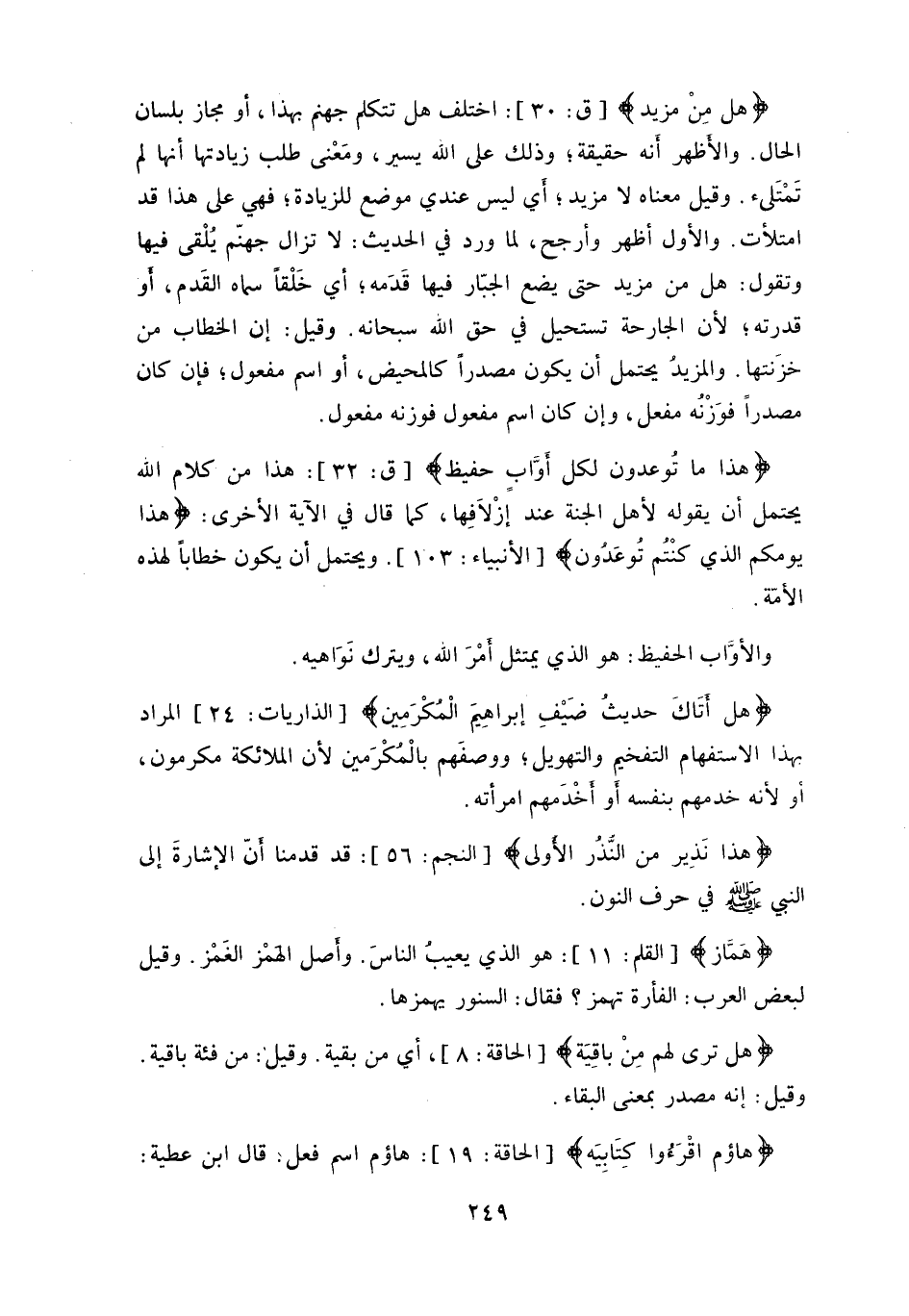 وقيل معناه لا مزيد، أَي ليس عندي موضع للزيادة، فهي على هذا قد