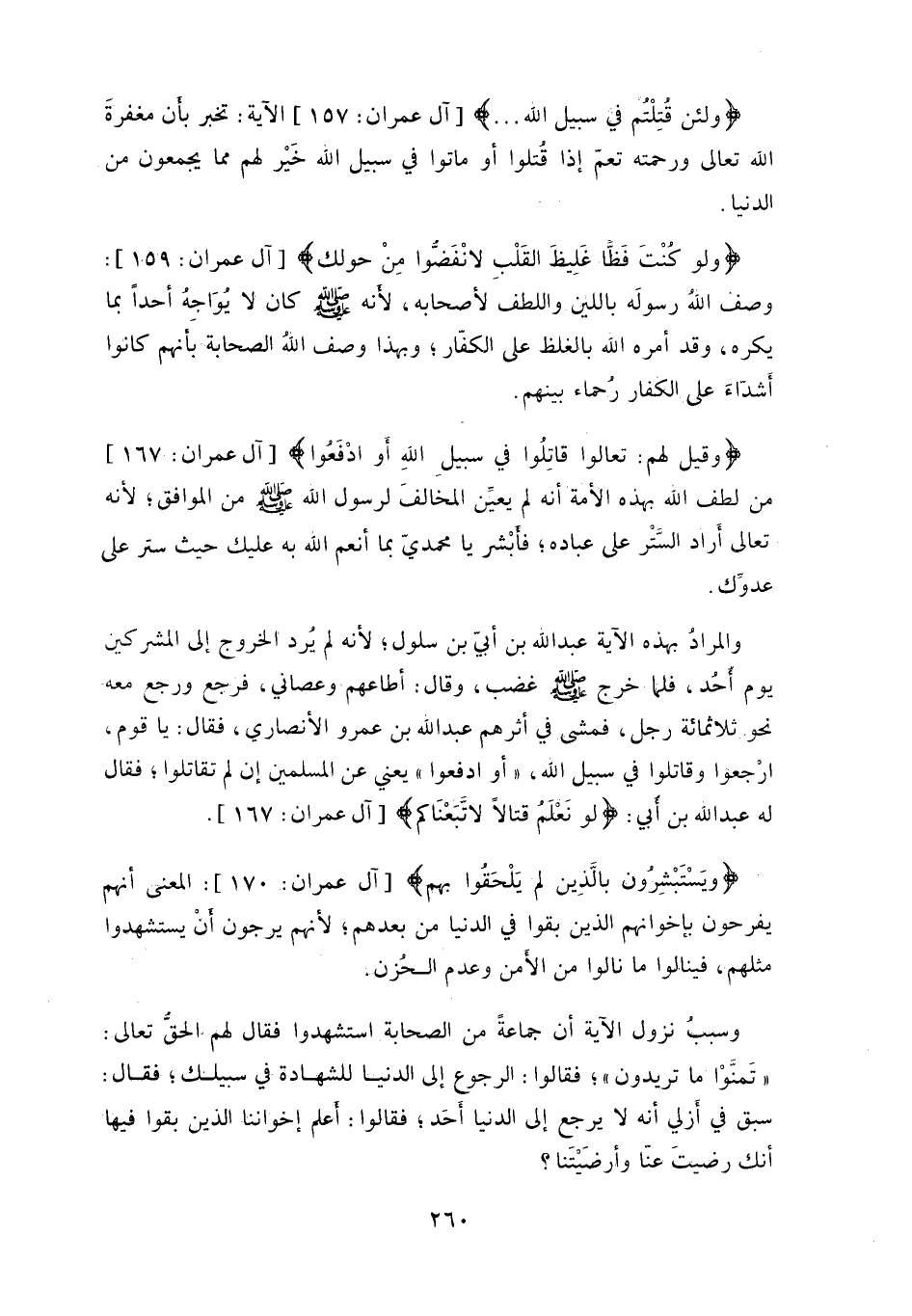 يوم أحُد، فلما خرج - صلى الله عليه وسلم - غضب، وقال: أطاعهم وعصاني، فى جمع ورجع معه نحوء ثلاثمائة رجل، فمشى في أثرهم عبد اللَه بن عمرو الأنصاري، فقال: يا قوم ارجعوا وقاتلوا في سبيل الله أو ادفعوا يعني عن المسلمين إن لم تقاتلوا، فقال له عبد الله بن أبي: (لَوْ نَعْلَمُ قِتَالًا لَاتَّبَعْنَاكُمْ) .