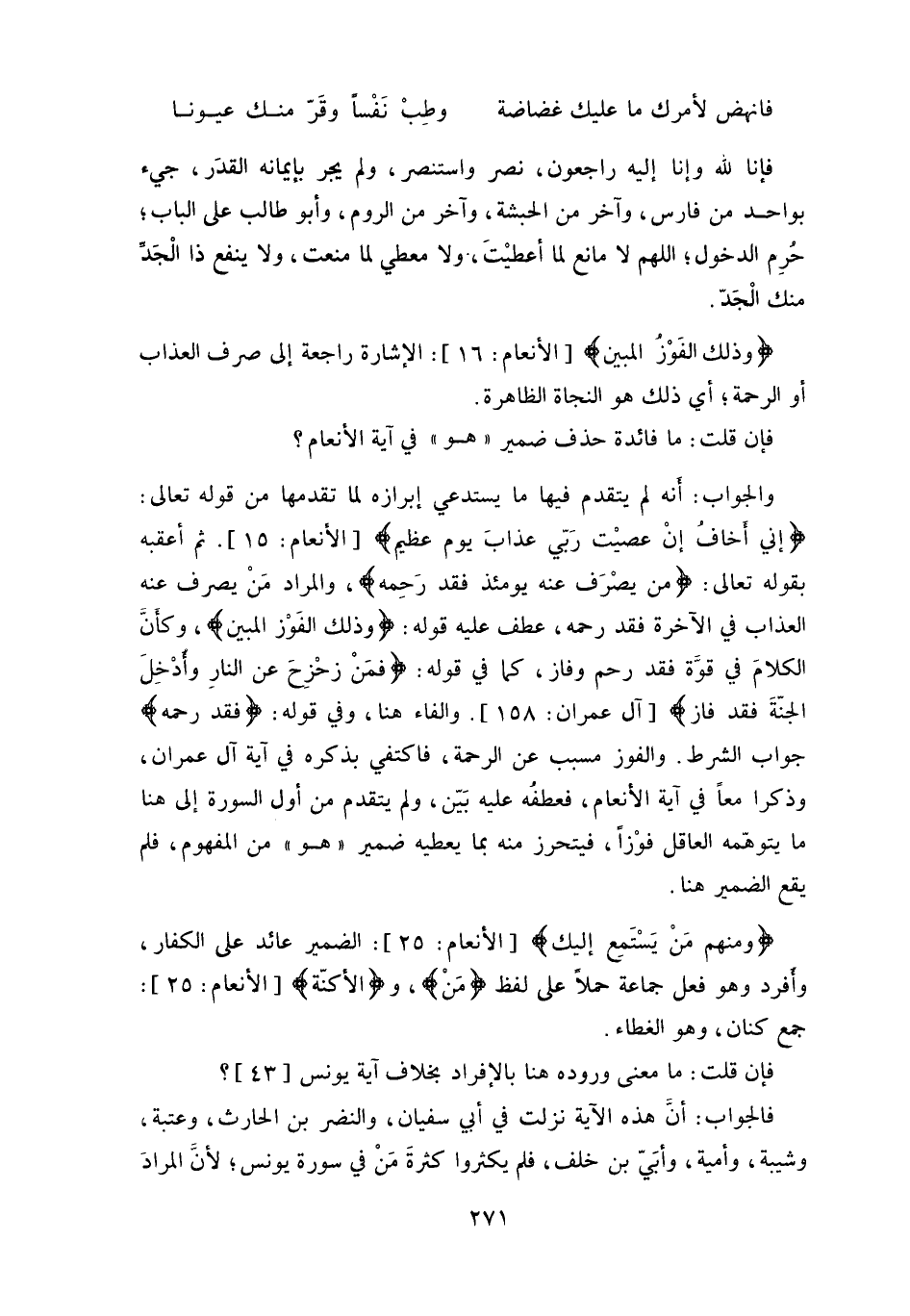 فإن قلت: ما فائدة حذف ضمير " هو " في آية الأنعام؟