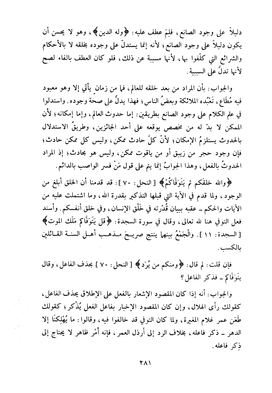 طَعَن عمر غلام المغيرة، ولما كان التوفي قد خالفوا فيه، وقالوا: ما يهلِكنَا إلا الدهر - ذكر فاعله، بخلاف الرد إلى أرذل العمر، فإنه أمْر ظاهر لا يحتاج إلى ذِكر فاعله.