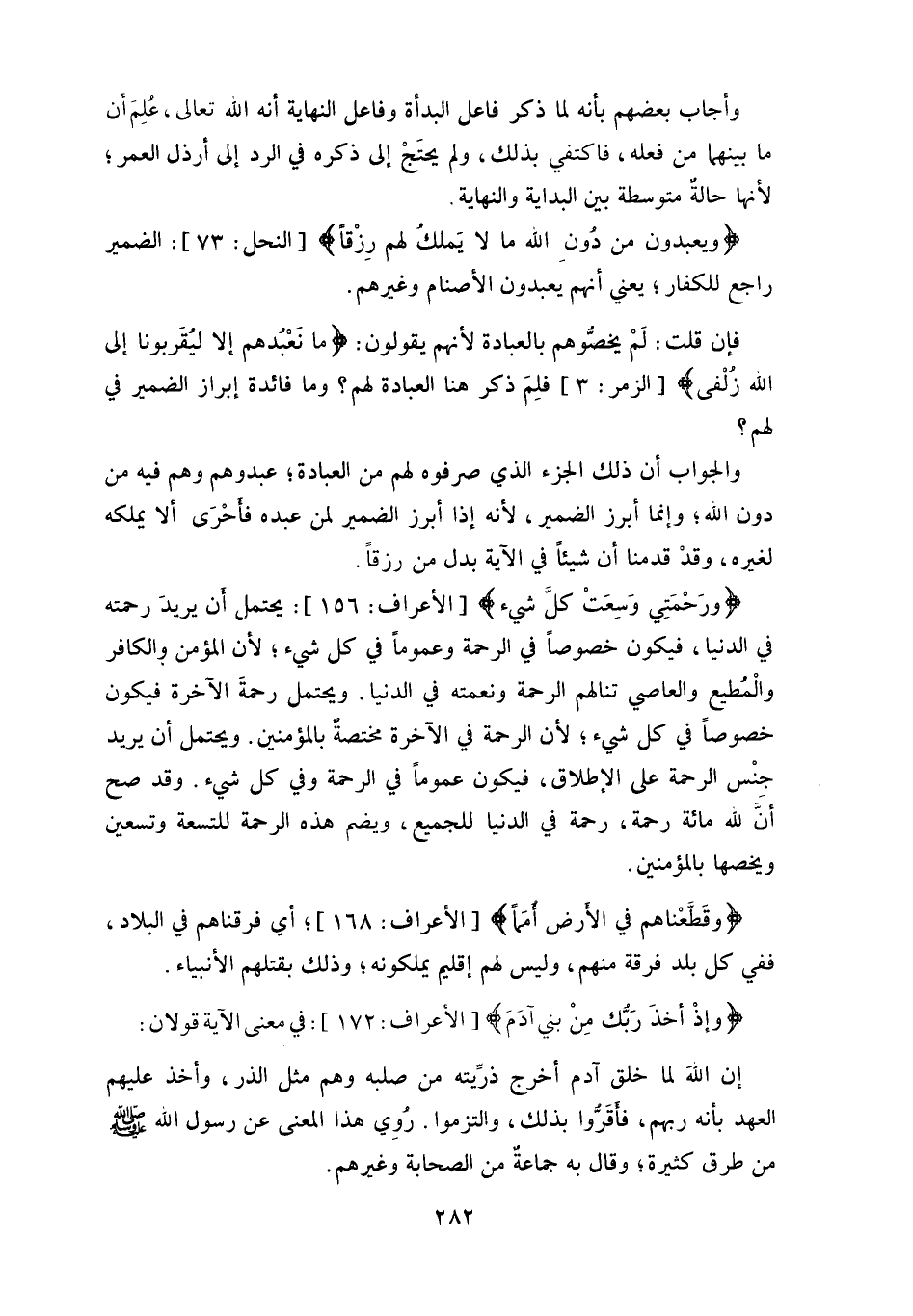 وأجاب بعضهم بأنه لما ذكر فاعل البدأة وفاعل النهاية أنه الله تعالى، عُلِمَ أن