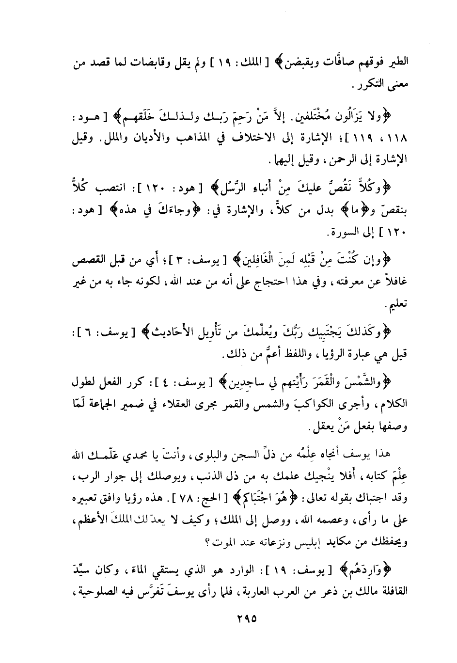 (وَاردَهُم) : الوارد هو الذي يستقي الماء، وكان سيدَ القافلة مالَك بن ذعر من العرب العاربة، فلما رأى يوسفَ تَفرَّس فيه الصلوحية،