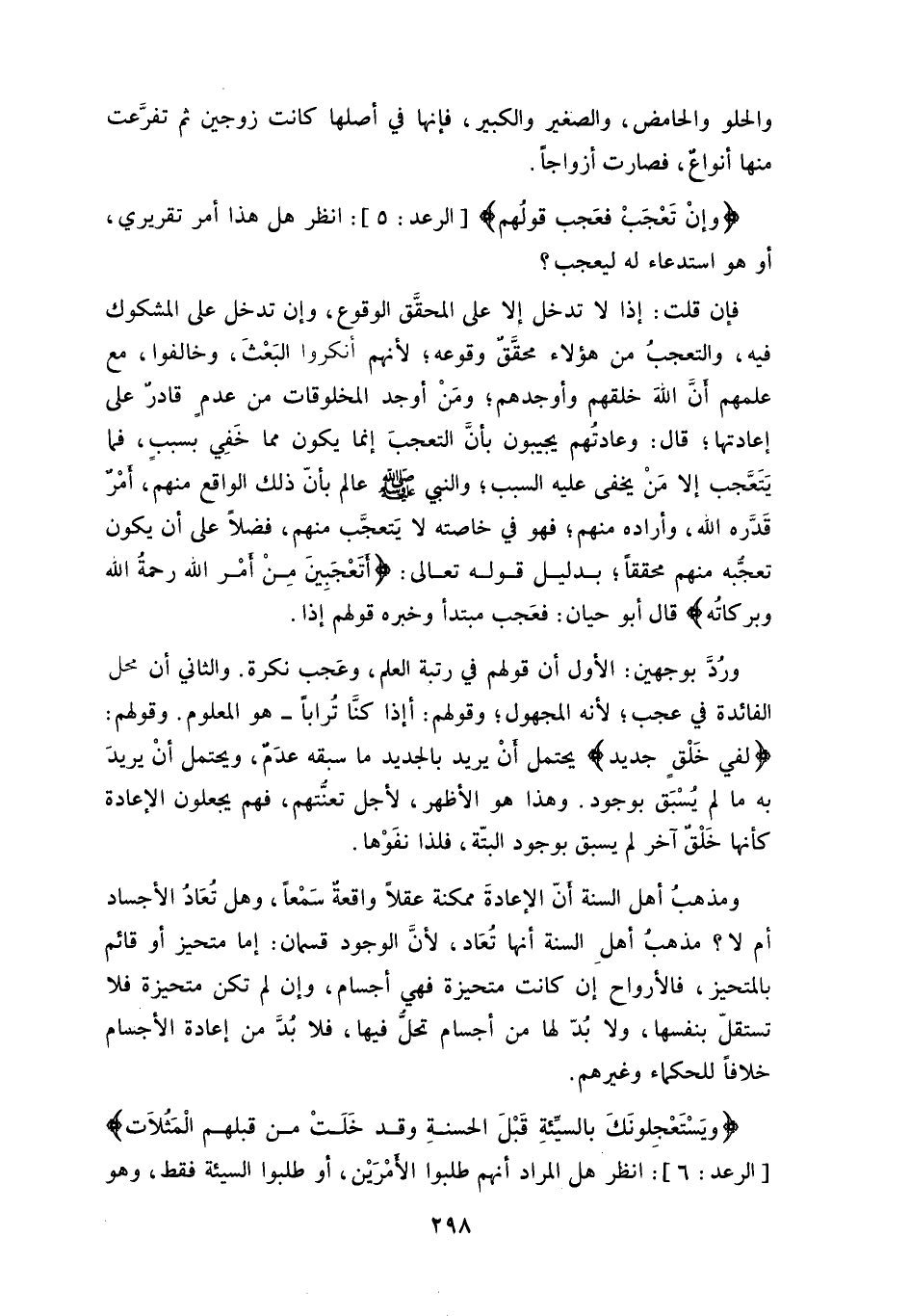 وقولهم: (لفي خَلْقٍ جديد) يحتمل أنْ يريد بالجديد ما سبقه عدَم، ويحتمل أنْ يريدَ به ما لم يُسْبَق بوجود.