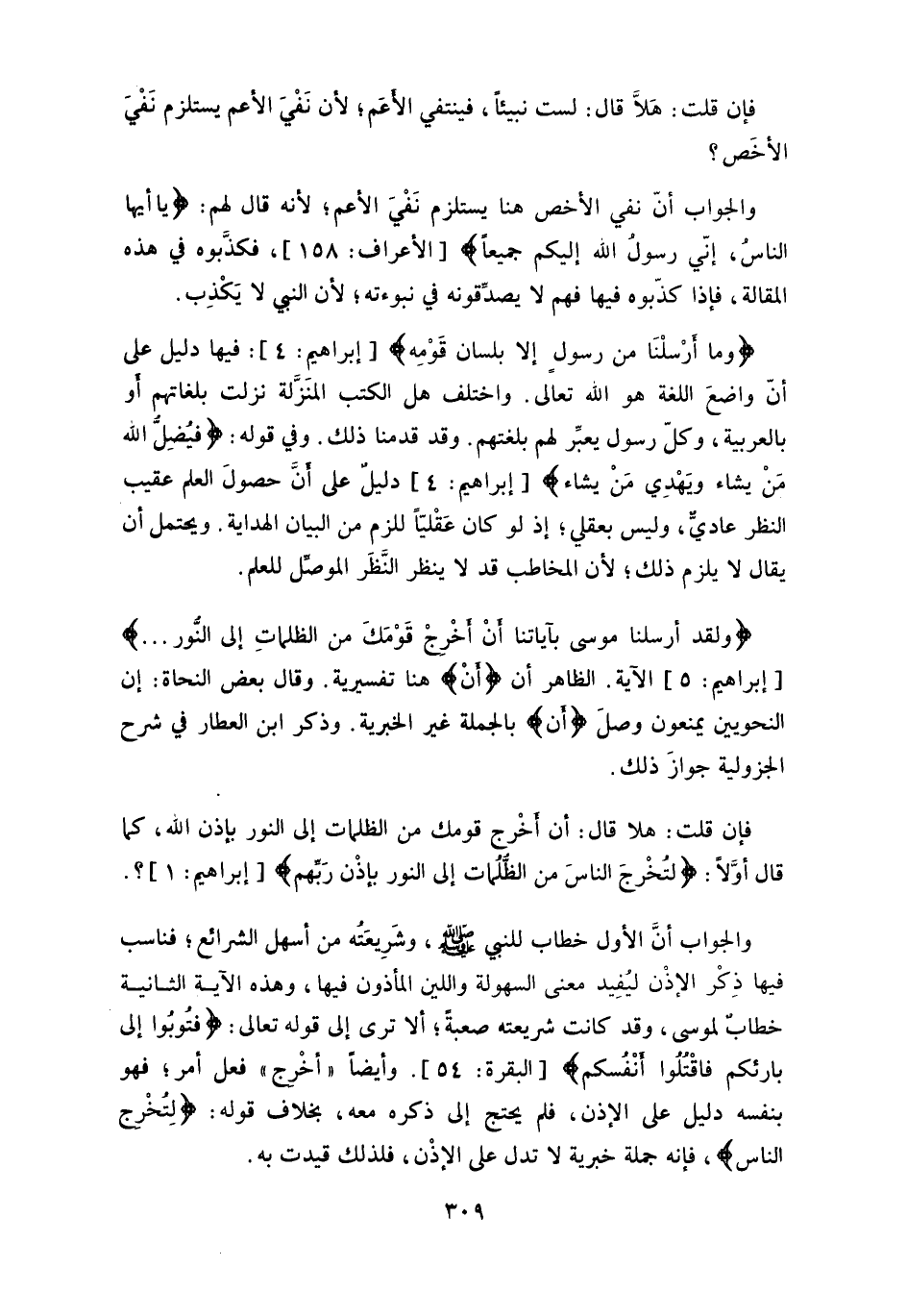 قال أوَّلاً: (لتُخْرجَ الناسَ من الظّلُمات إلى النور بإذْن رَبِّهم) ؟