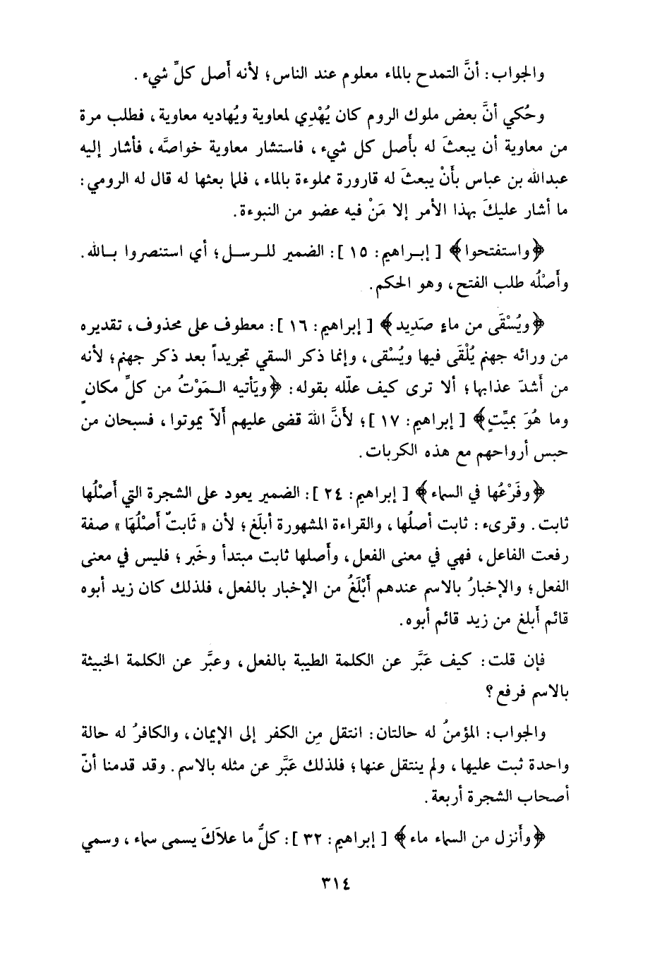 معطوف على محذوف، تقديره من ورائه جهنم يُلْقَى فيها ويُسْقى، وإنما ذكر السقي تجريدا بعد ذكر جهنم، لأنه من أَشدّ عذابها، ألا ترى كيف علّله بقوله: (وَيَأْتِيهِ الْمَوْتُ مِنْ كُلِّ مَكَانٍ وَمَا هُوَ بِمَيِّتٍ) ، لأن اللهَ قضى عليهم ألاَّ يموتوا، فسبحان من حبس أرواحهم مع هذه الكربات.