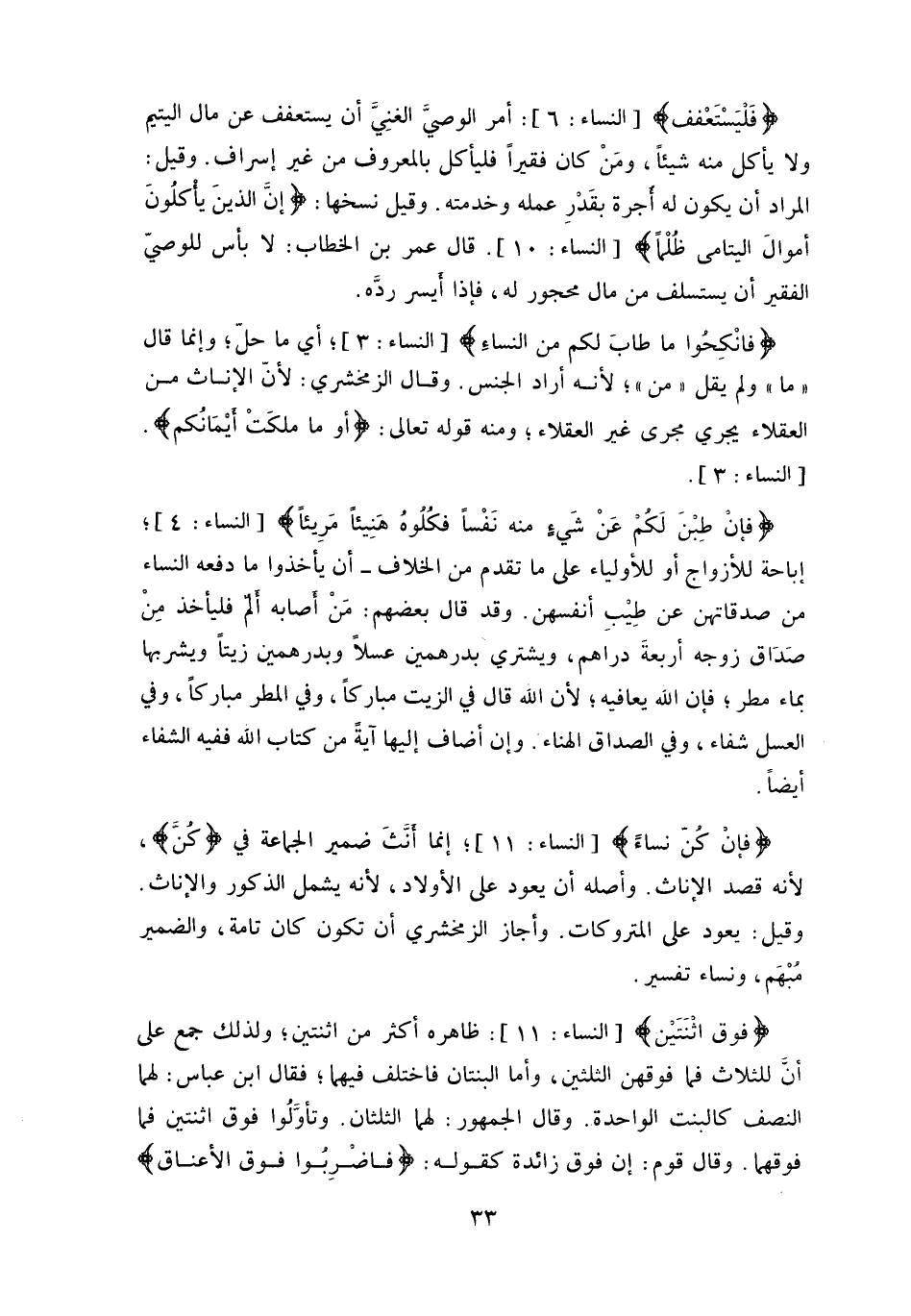 ظاهره أكثر من اثنتين، ولذلك جمع على أن للثلاث فما فوقهن الثلثين، وأما البنتان فاختلف فيهما، فقال ابن عباس: لهما النصف كالبنت الواحدة.