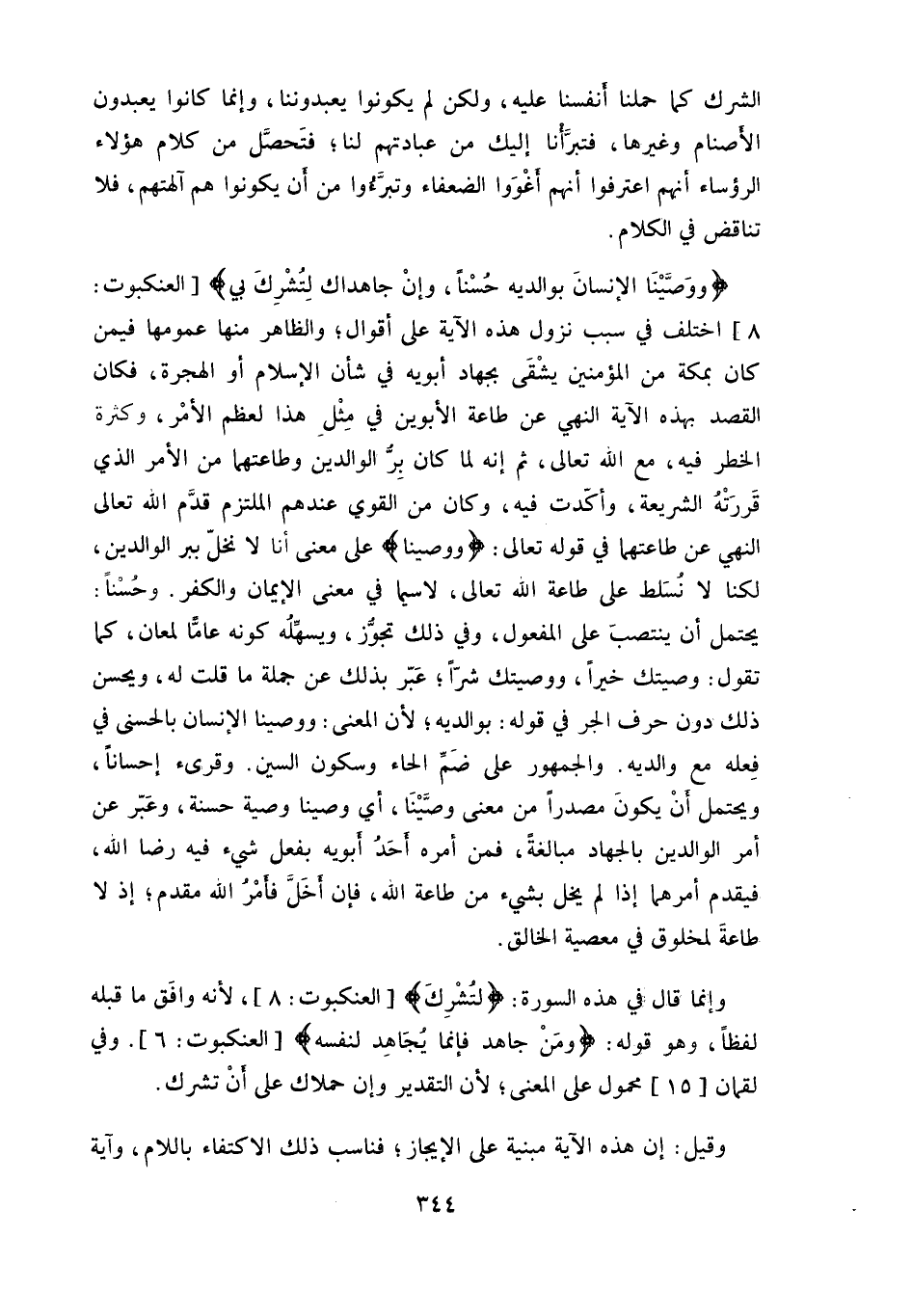 (وَوَصَّيْنَا الْإِنْسَانَ بِوَالِدَيْهِ حُسْنًا وَإِنْ جَاهَدَاكَ لِتُشْرِكَ بِي مَا لَيْسَ لَكَ بِهِ عِلْمٌ فَلَا تُطِعْهُمَا) .