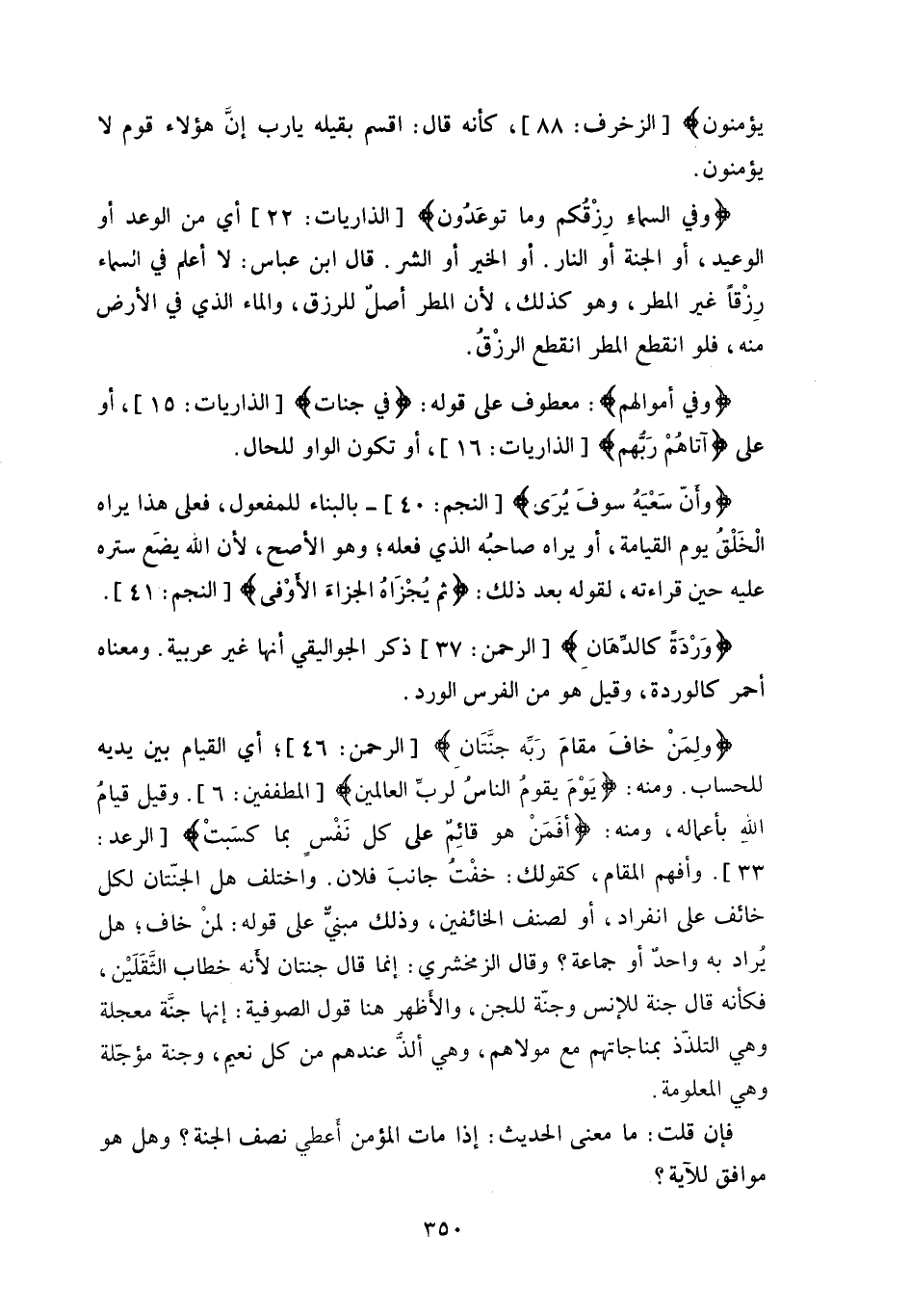 فإن قلت، ما معنى الحديث: إذا مات المؤمن أعطي نصف الجنة، وهل هو