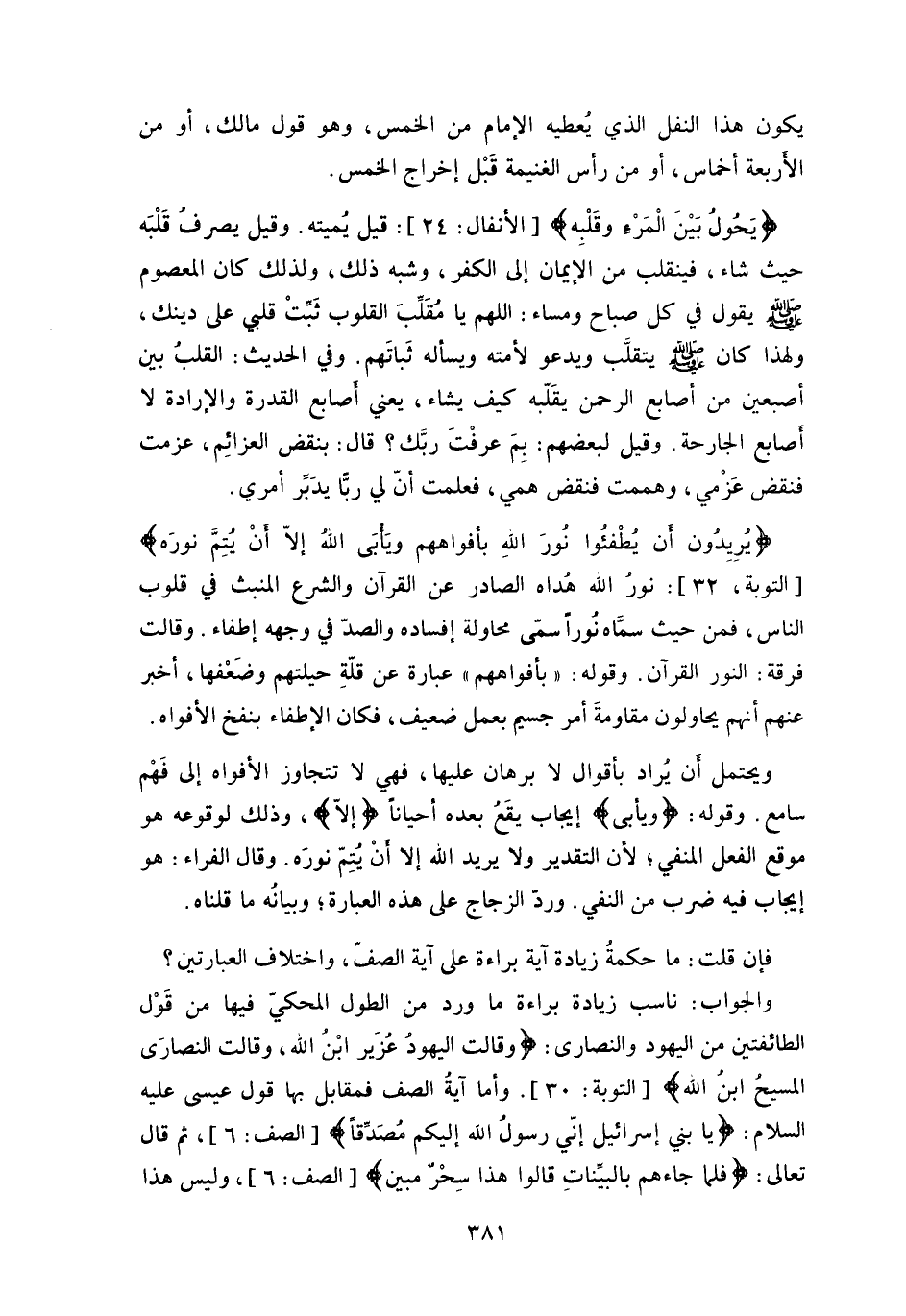 وفي الحديث: القلبُ بين أصبعين من أصابع الرحمن يقَلّبه كيف يشاء، يعني أصابع القدرة والإرادة لا أصابع الجارحة.