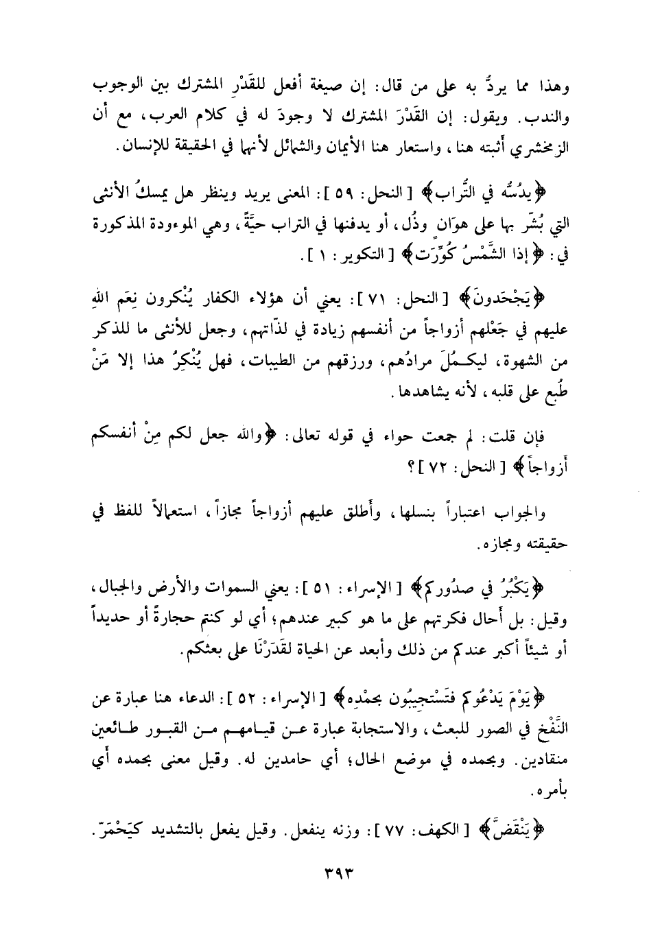 وهذا مما يردّ به على من قال: إن صيغة أفعل للقَدْرِ المشترك بين الوجوب