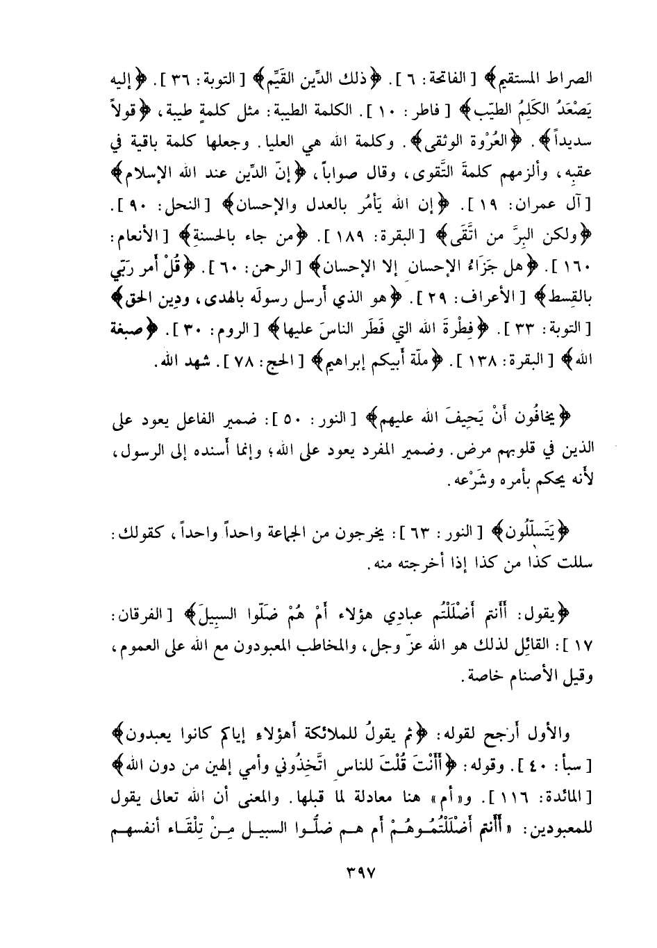 (صبغة اللَه) ، (ملَّة أبيكم إبراهيم) ، (شهد الله) .