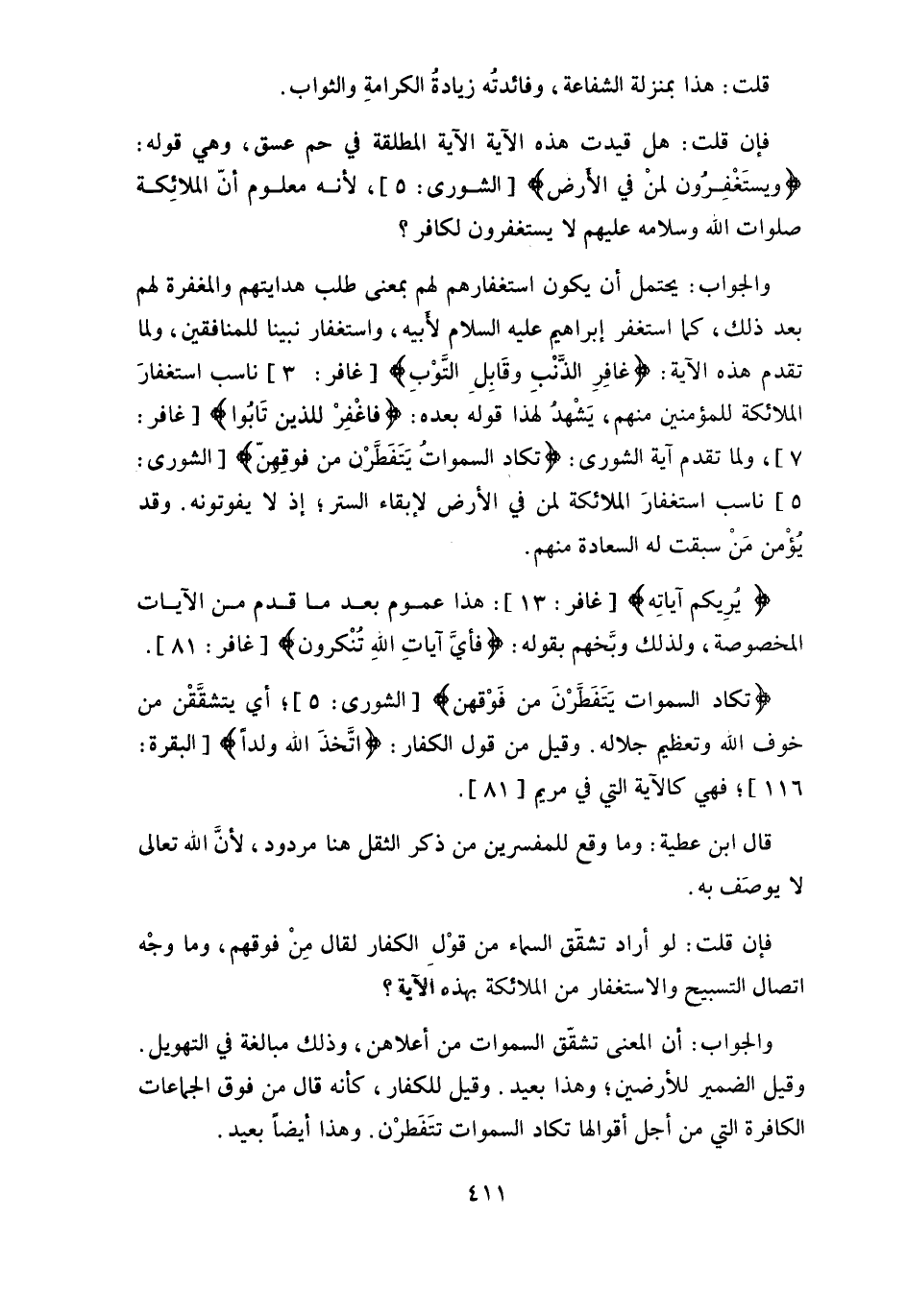 (تكاد السماوات يَتَفَطَّرْنَ من فَوْقهن) ، أي يتشقَّقْن من