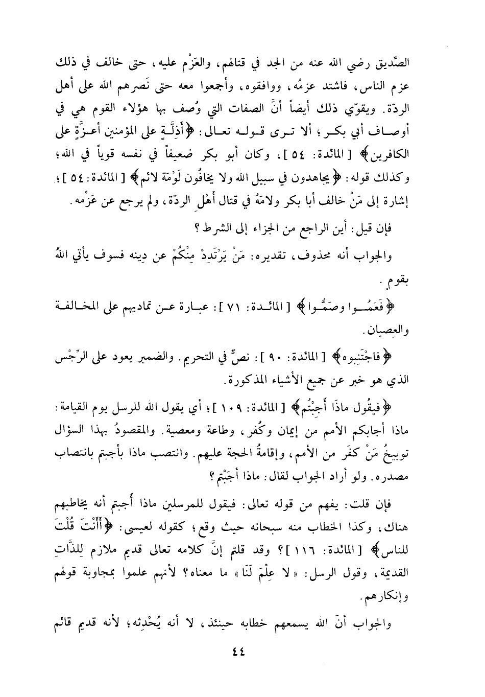 إشارة إلى مَنْ خالف أبا بكر ولامة في قتال أهْلِ الردة، ولم يرجع عن عَزْمه.
