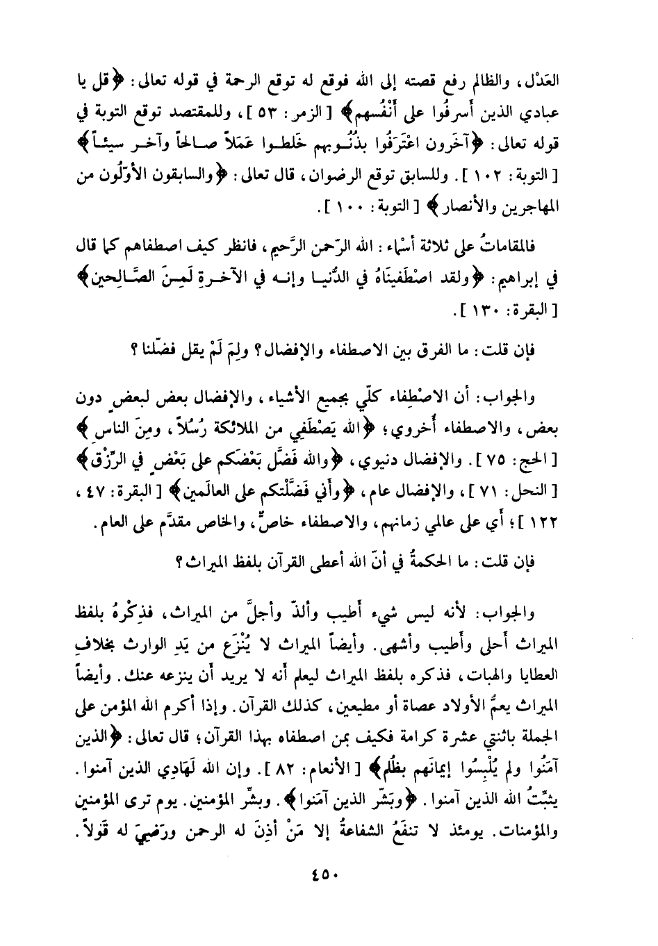 فالمقاماتُ على ثلاثة أسْماء: الله الرحمن الرحيم، فانظر كيف اصطفاهم كما قال في إبراهيم: (ولقد اصْطَفينَاه في الدُّنيا وإنه في الآخرةِ لَمِن الصَّالِحين) .