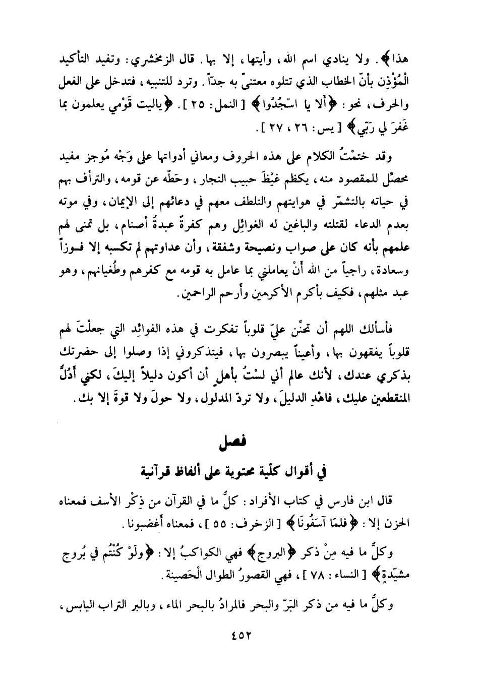 (فصل في أقوال كلِّية محتوية على ألفاظ قرآنية)