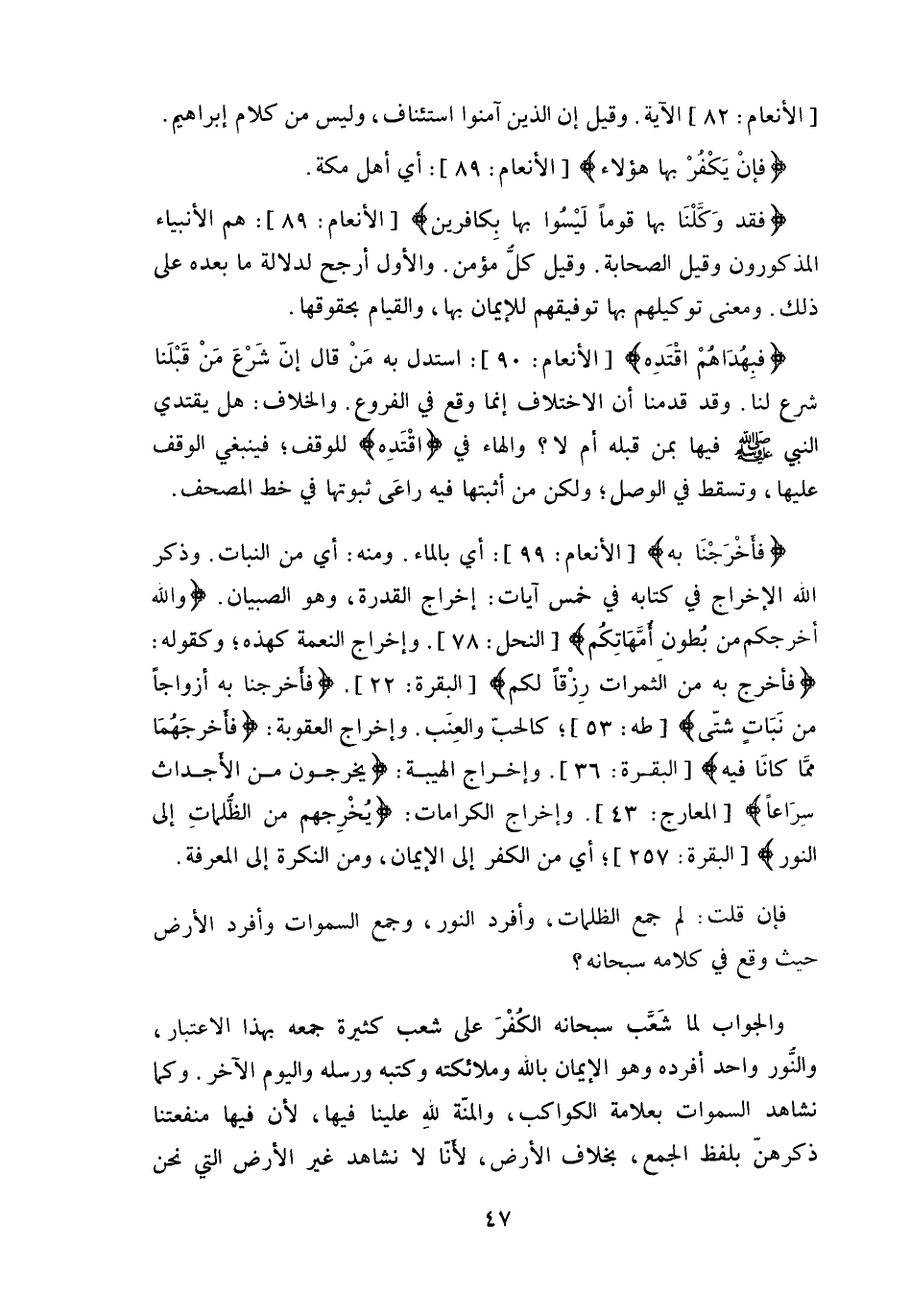 والنُّور واحد أفرده وهو الإيمان بالله وملائكته وكتبه ورسله واليوم الآخر.
