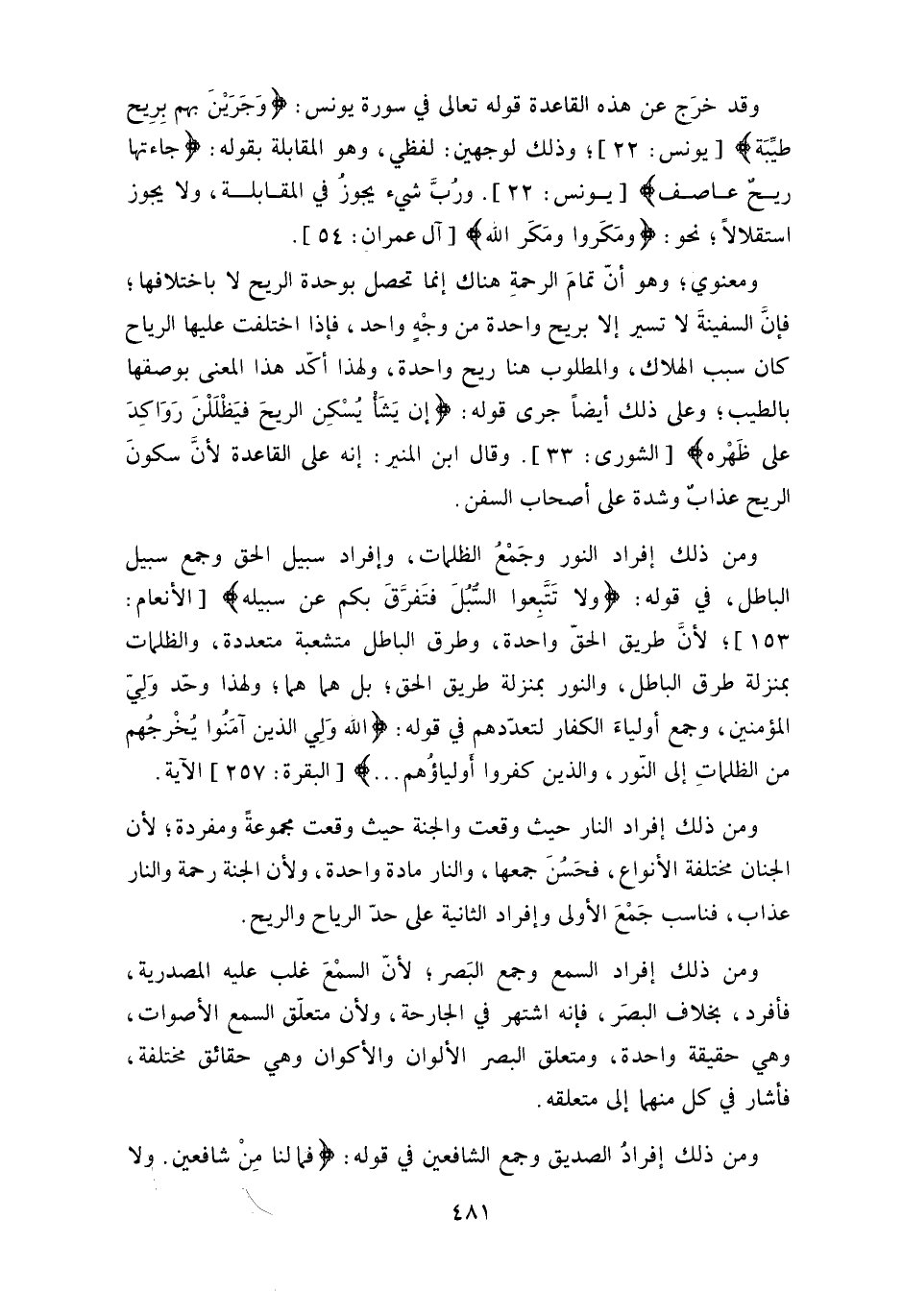 ومن ذلك إفراد النور وجَمْع الظلمات، وإفراد سبيل الحق وجمع سبيل