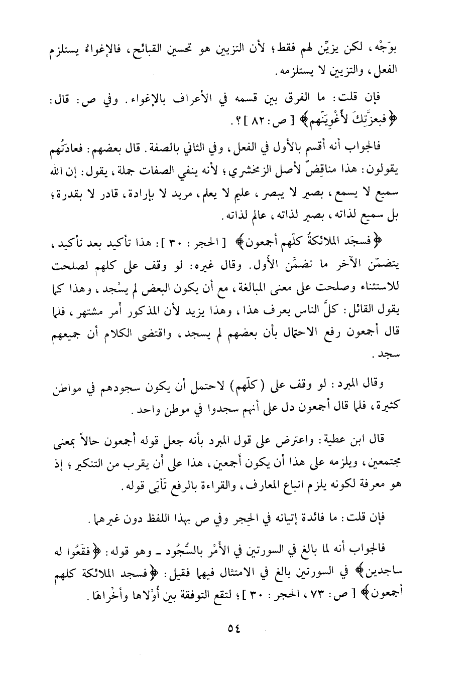 (فَسَجَدَ الْمَلَائِكَةُ كُلُّهُمْ أَجْمَعُونَ) :