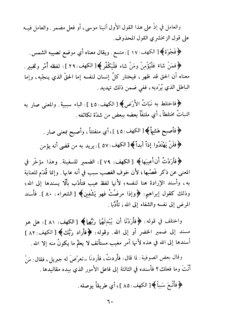 وقال بعض الصوفية: لما قال: فأردتُ، فأردنَا - تعرَّضَ له جبريل، فقال: مَنْ أنتَ وما فعلك، فأسنده في الثالثة إلى فاعل الأمور الذي بيده مقاليدها (1) .