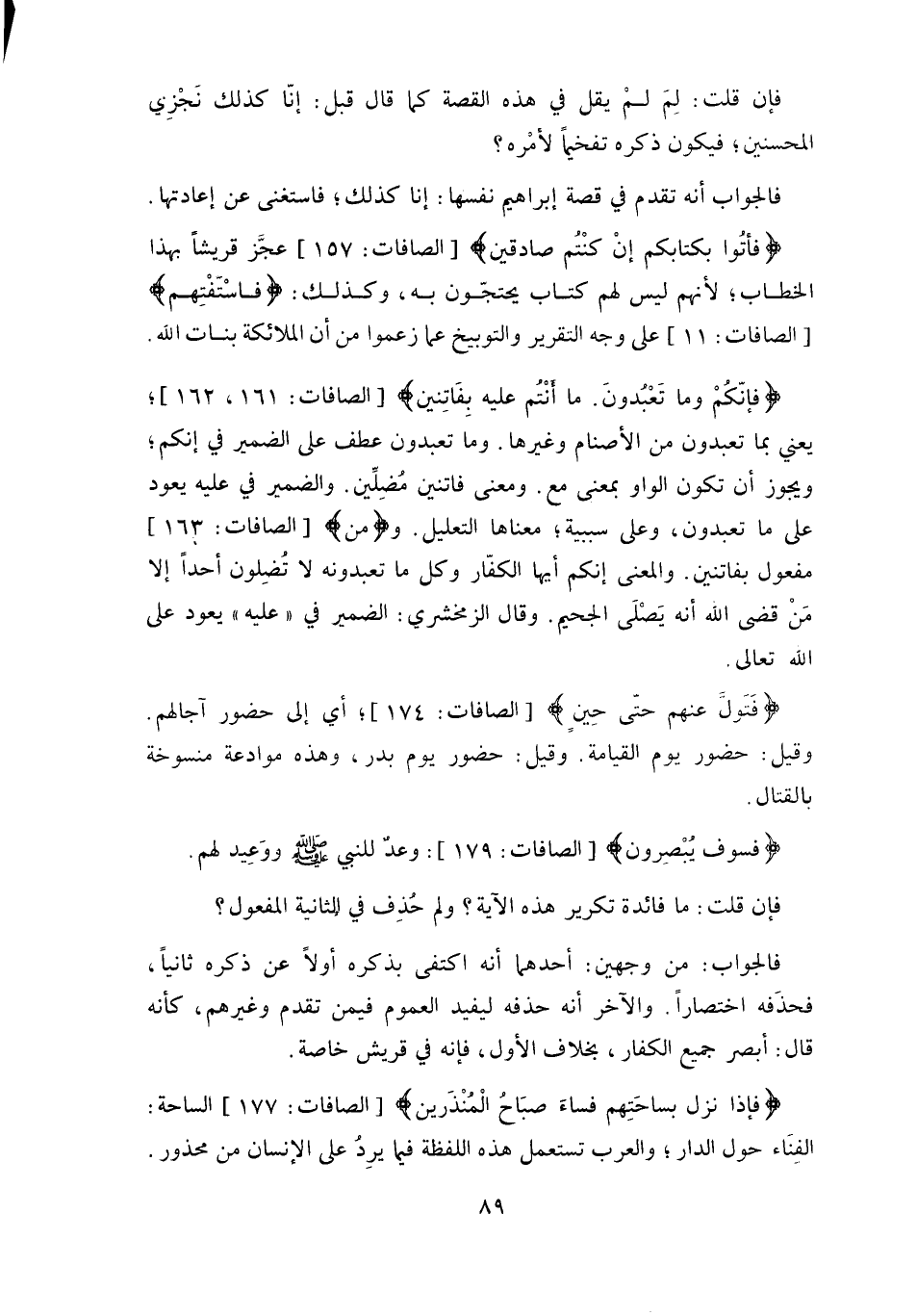 عجَّز قريشاً بهذا الخطاب، لأنهم ليس لهم كتاب يحتجُّون به، وكذلك: (فاسْتَفْتِهم) ، على وجه التقرير والتوبيخ عما زعموا من أن الملائكة بناتْ الله.