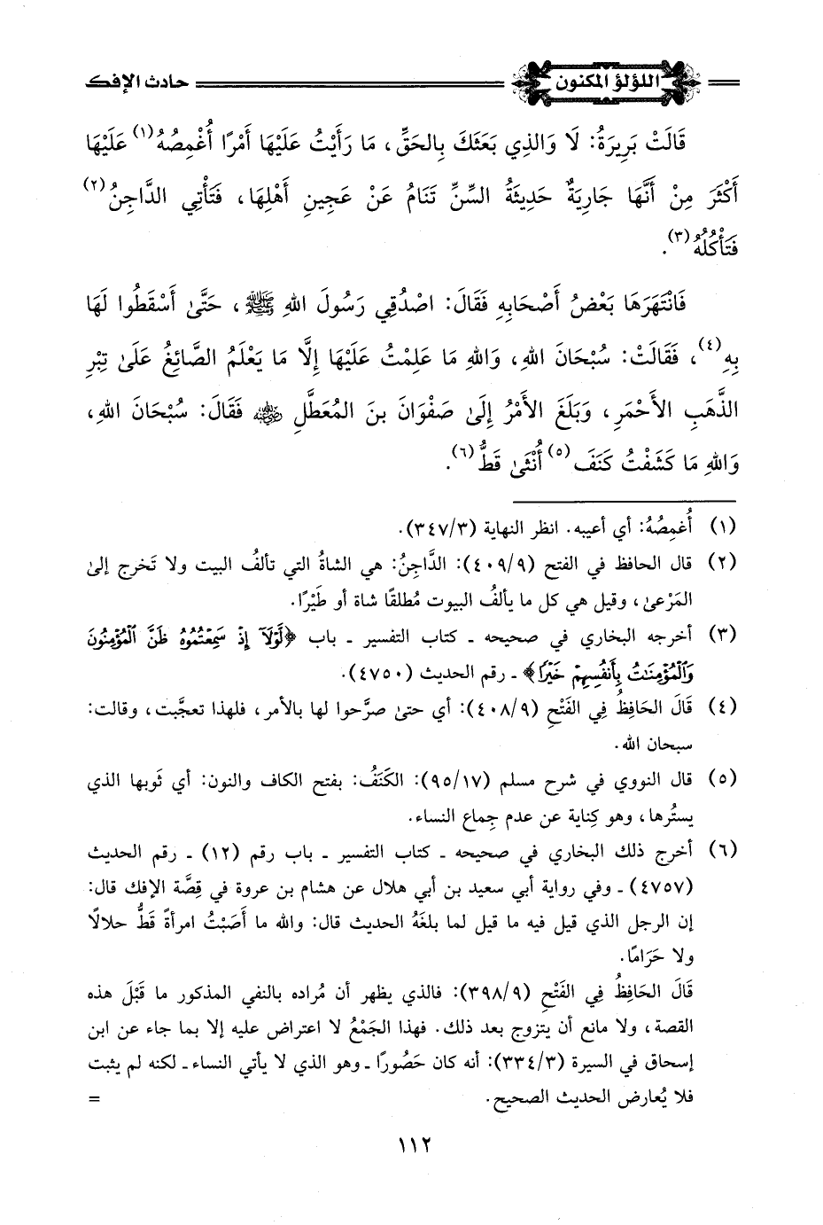 (¬1) أخرجه البخاري في صحيحه - كتاب المغازي - باب حديث الإفك - رقم الحديث (4143) قَالَ الحَافِظُ فِي الفَتْحِ (9/ 405): طرُق حديث الإفك مجتمعة على أن عائشة بلغها الخبر من أم مِسطح، لكن وقع فِي حديث أمِّ رومان ما يُخالف ذلك، وطريق الجمع بينهما: أنها سمعت ذلك أوَّلًا من أم مسطح، ثم ذهبت لبيتِ أمها لتستيقن الخبر منها فأخبرتها أمها بالأمر مجملًا كما مضى من قولها: هوني عليك وما أشبه ذلك، ثم دخلت عليها الأنصارية، فأخبرتها بمثل ذلك بحضرةِ أمها، فقَوِيَ عندها القطع بوُقوع ذلك، فسألت هل سمعه أبوها وزوجها؟ ترجيًا منها أن لا يكونا سَمِعَا ذلك ليكون أسهل عليها، فلما قالت لها أنهما سمعاه غُشِيَ عليها.
