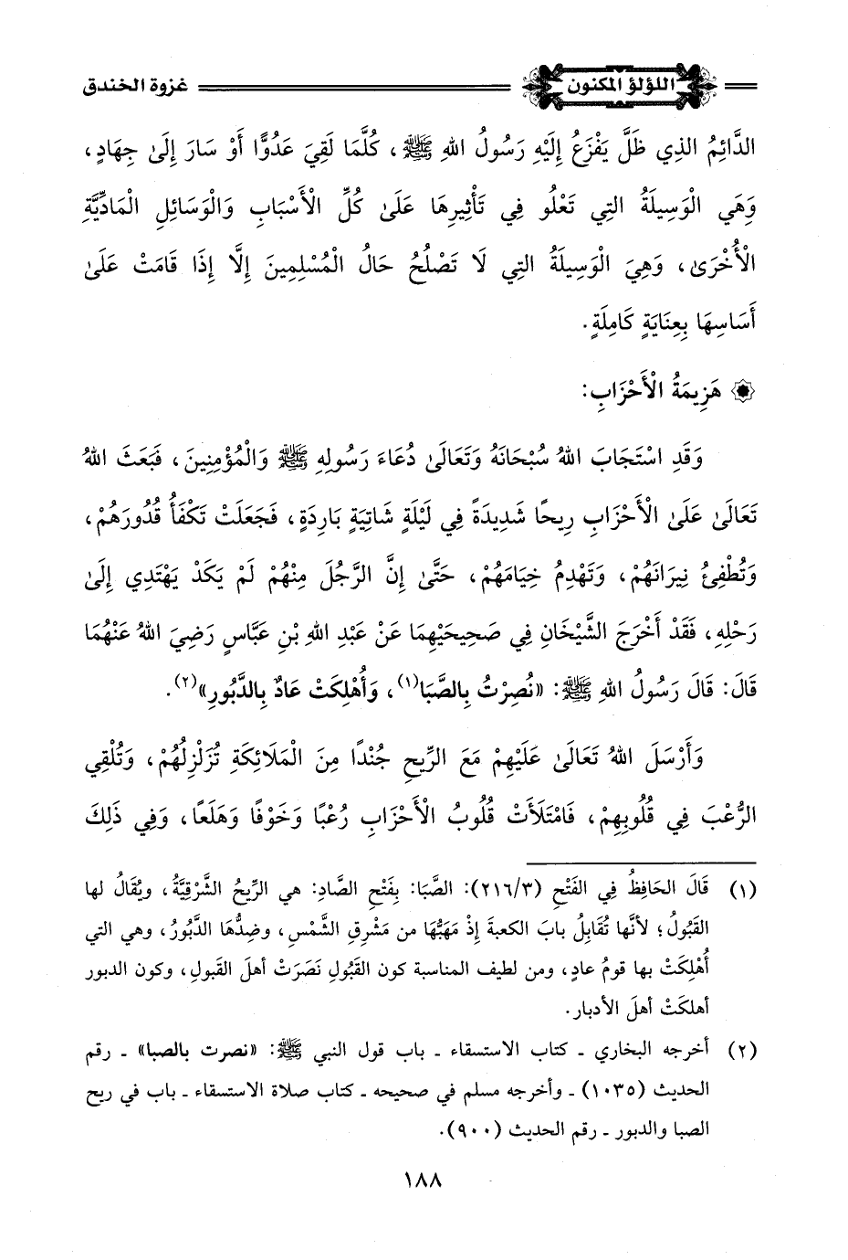 (¬2) أخرج البخاري هذا الحديث في صحيحه - كتاب المغازي - باب غزوة الخندق وهى الأحزاب - رقم الحديث (4114) - وأخرجه مسلم في صحيحه - كتاب الذكر والدعاء - باب التعوذ من شر ما عمل، ومن شر ما لم يعمل - رقم الحديث (2724) - وانظر كلام الحافظ ابن كثير رَحِمَهُ اللَّهُ تَعَالَى في تفسيره (6/ 396).
